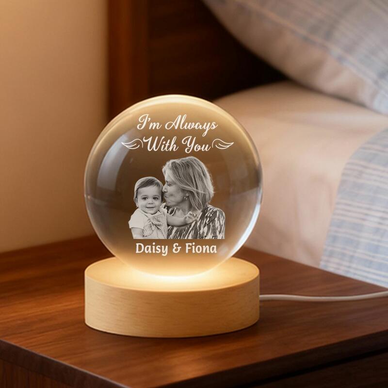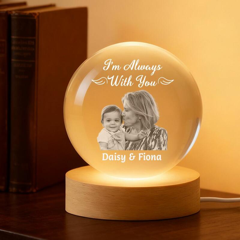 Personalized Crystal Ball Lamp with Photo Unique Memorial Gift for Grandma & Grandkids
