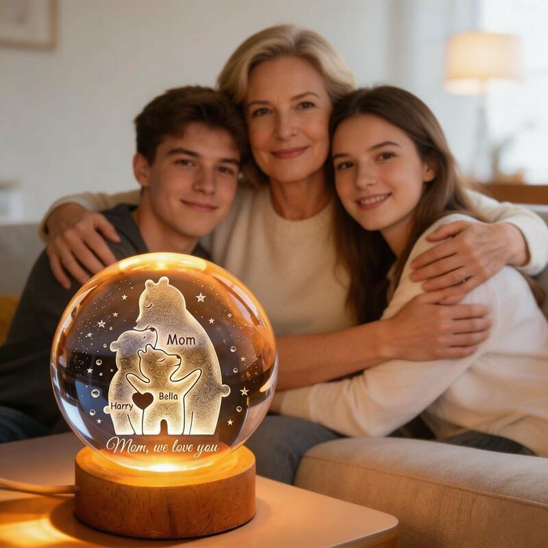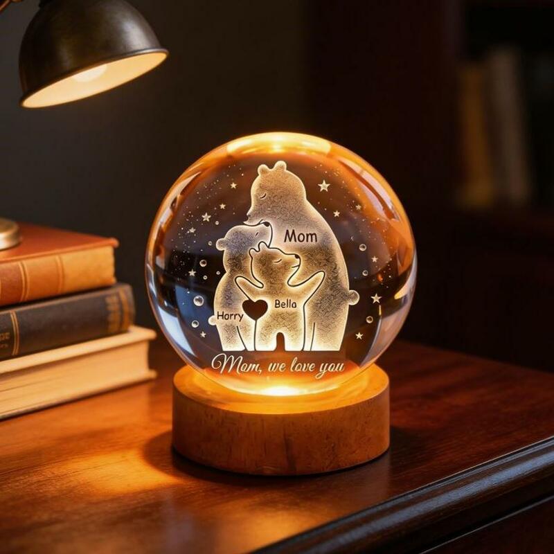 Personalized Crystal Ball Night Light with Child's Name a Heartwarming Mother's Day Gift for Mom