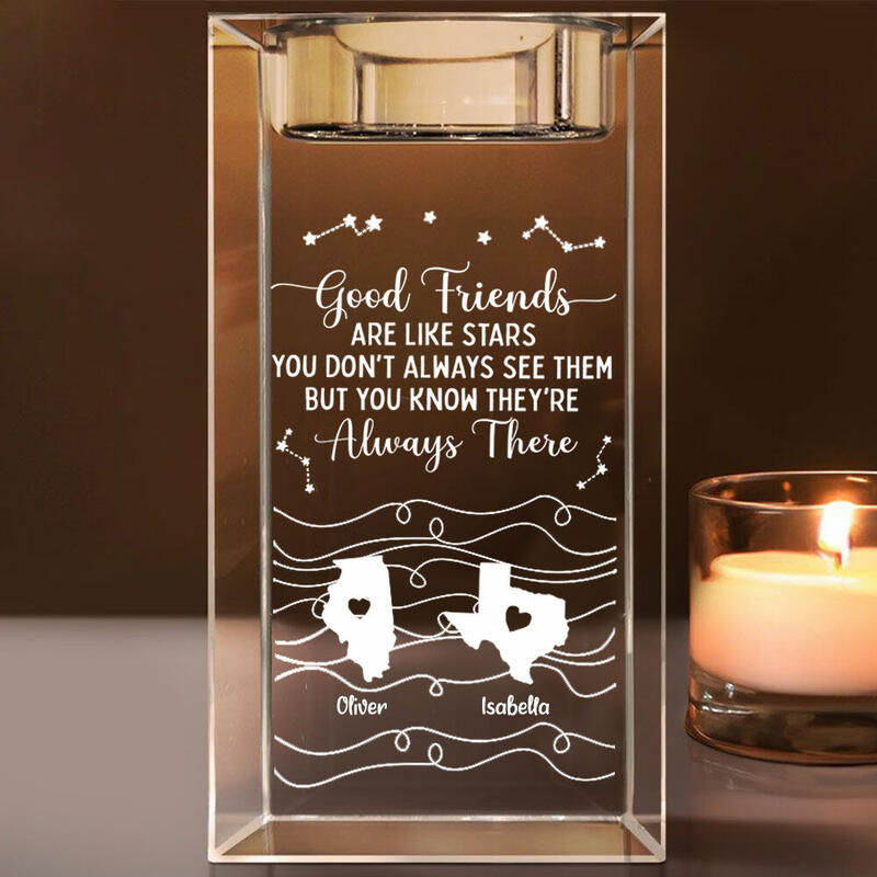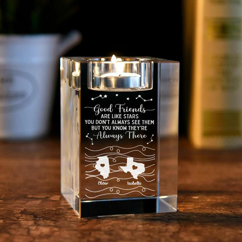 Personalized Crystal Candle Holder with Custom Names as Long-Distance Birthday Gifts for Friends
