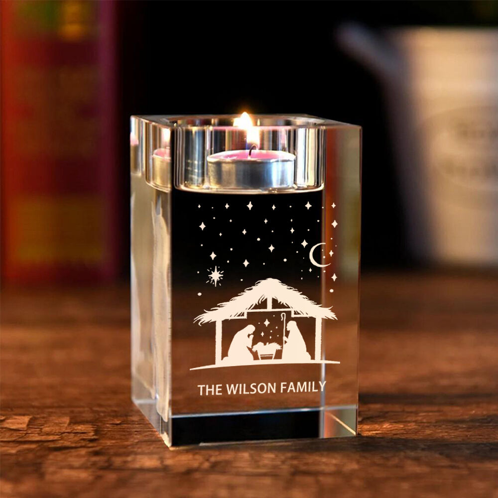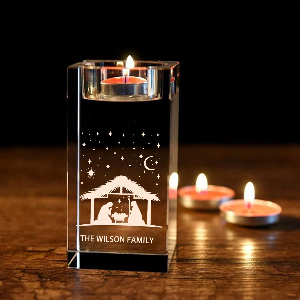 Personalized Crystal Candle Holder with Little House Add Last Name Christmas Gift for Family
