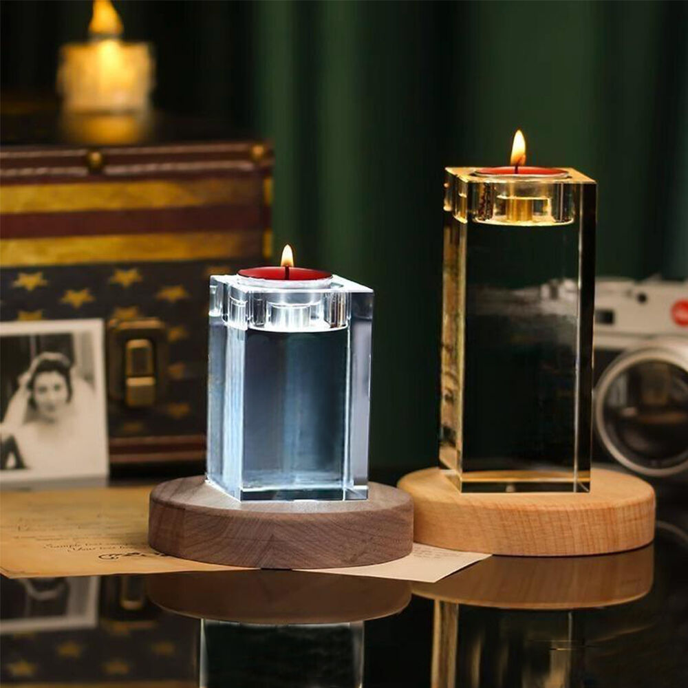 Light up your special moments with our custom crystal candle holders, a stunning, personalized piece that combines elegance with sentimental value.