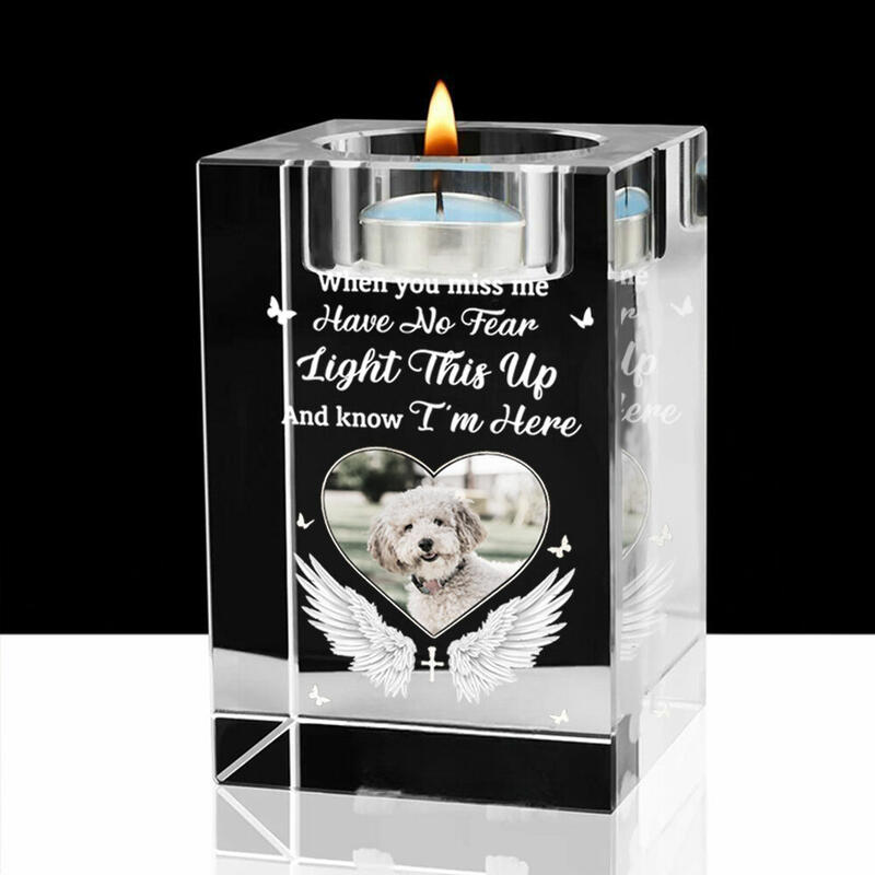 Personalized Crystal Candle Holders Custom Pet Photo Memorial Crystal Decorations for Pet Owners