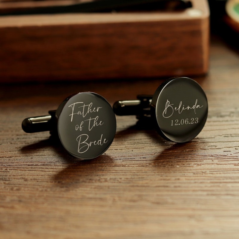 Crafted with precision and attention to detail, our cufflinks are designed to impress, enhancing your formal attire while reflecting the wearer's personality. The elegance and sophistication of custom cufflinks make them an essential accessory to elevate any man's suit. For grooms and groomsmen, gifting personalized cufflinks on a wedding day holds profound significance, serving as a cherished keepsake that celebrates the bond of friendship and love.