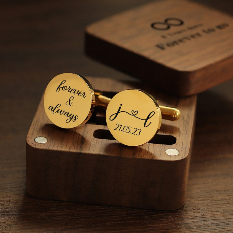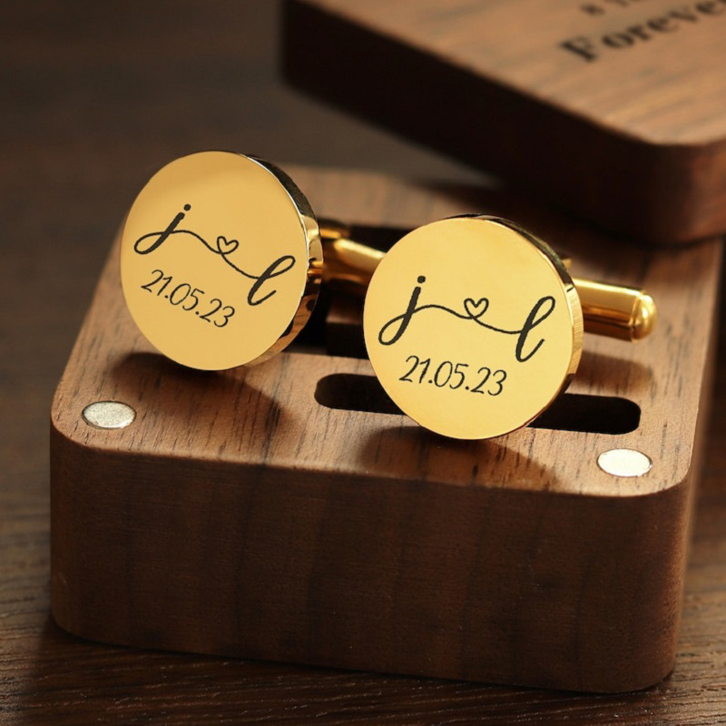 Crafted with precision and attention to detail, our cufflinks are designed to impress, enhancing your formal attire while reflecting the wearer's personality. The elegance and sophistication of custom cufflinks make them an essential accessory to elevate any man's suit. For grooms and groomsmen, gifting personalized cufflinks on a wedding day holds profound significance, serving as a cherished keepsake that celebrates the bond of friendship and love.