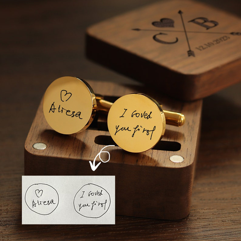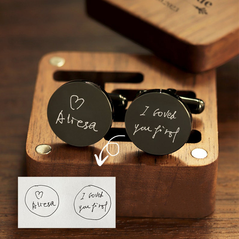Personalized Custom Cufflink Handwritten Photo Engraving Design Unique Wedding Gift for Him