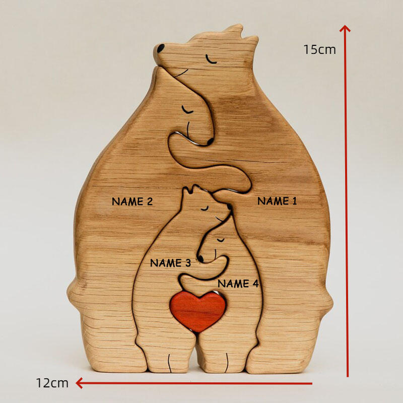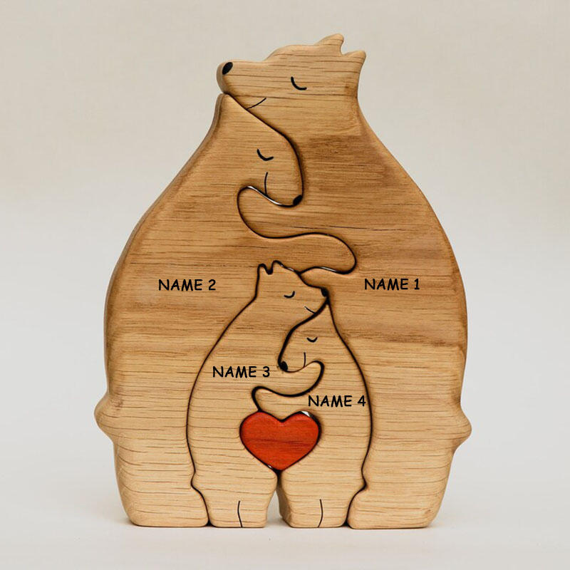 Personalized Custom Names Warm Bear Family Wooden Puzzle Funny Gift