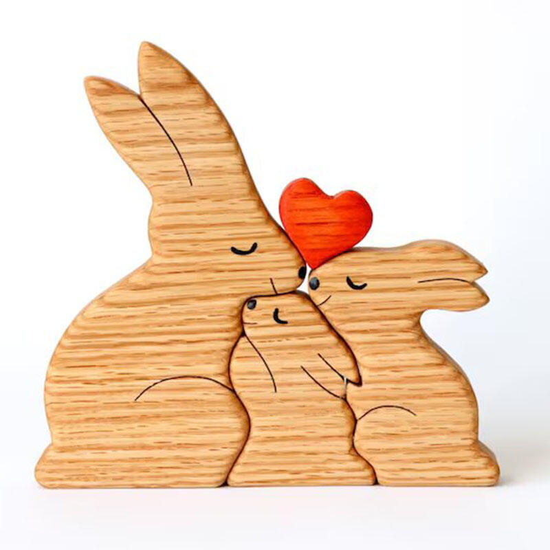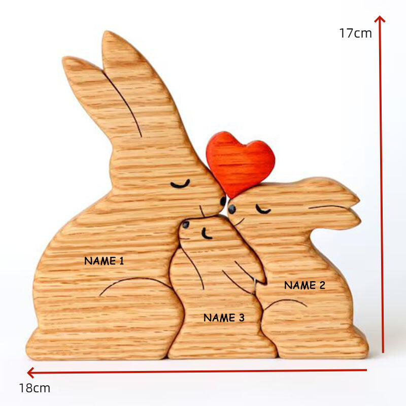 Personalized Custom Names Warm Rabbit Family Wooden Puzzle For Parents