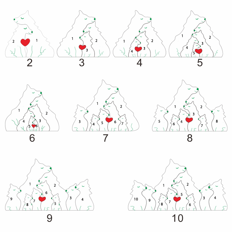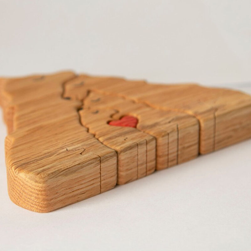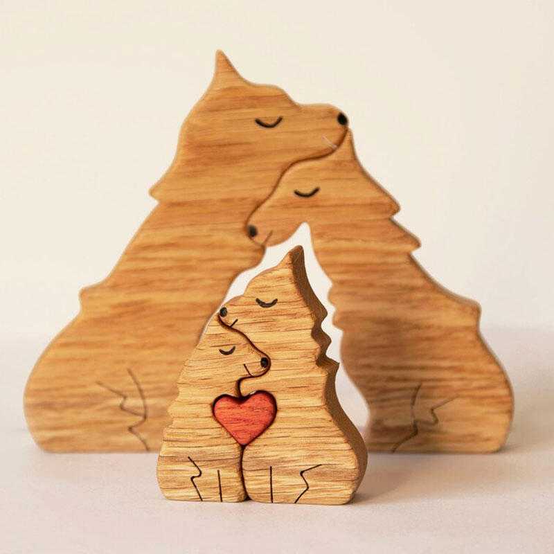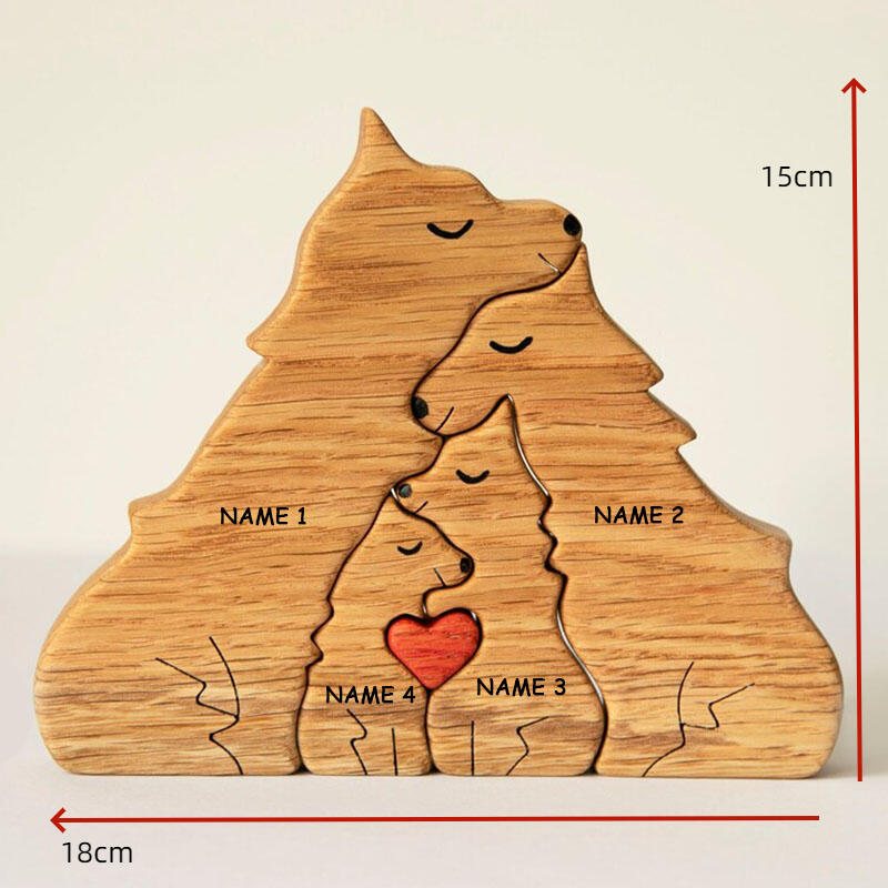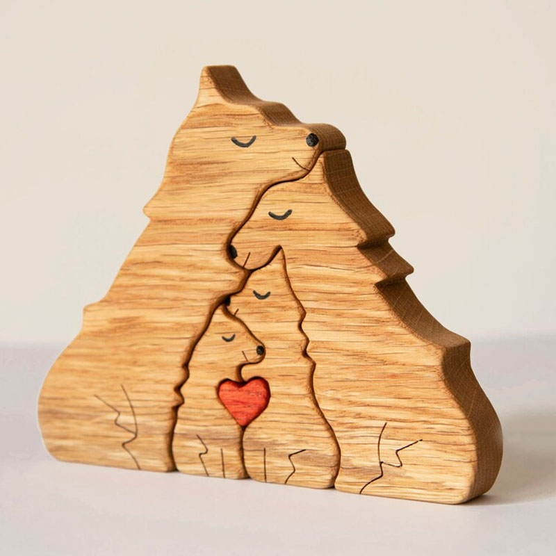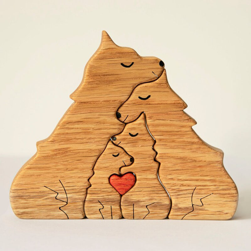 Each of our wooden puzzles is made from high-quality wood and is carefully designed and crafted. We pay attention to every detail to ensure each puzzle is of high quality and durability. One of the features of our wooden puzzles is the ability to customize them with family members' names. You can tell us the names of family members and we will use them to engrave the corresponding places on each puzzle piece. In this way, when you put the puzzle together, each family member's name will appear on the puzzle, showing the warmth of the family and making everyone feel belonging and cared for. We have designed a variety of animal shapes, such as bears, rabbits, kittens, etc. Each animal is carefully carved and painted, lifelike, full of childlike fun and cuteness. These animal-shaped puzzles will bring you a pleasant puzzle experience, while also adding to the decorative nature of the product, making it a beautiful addition to your home.