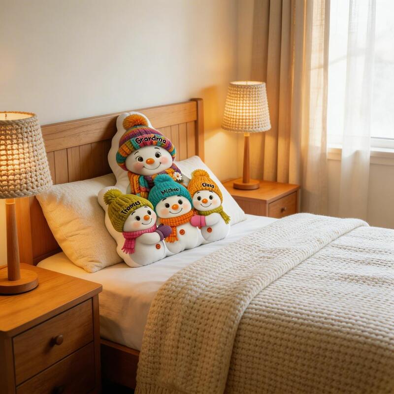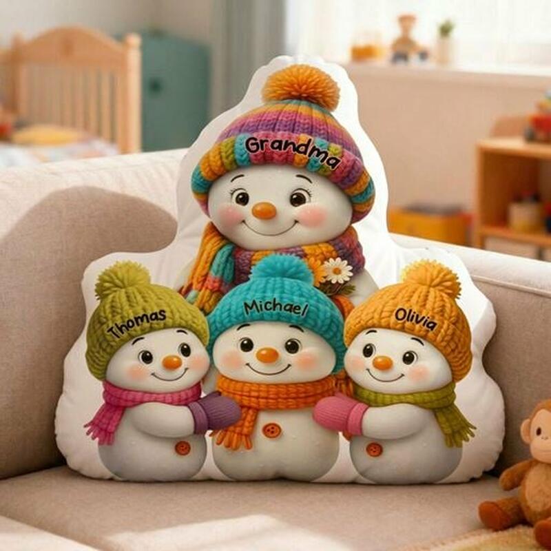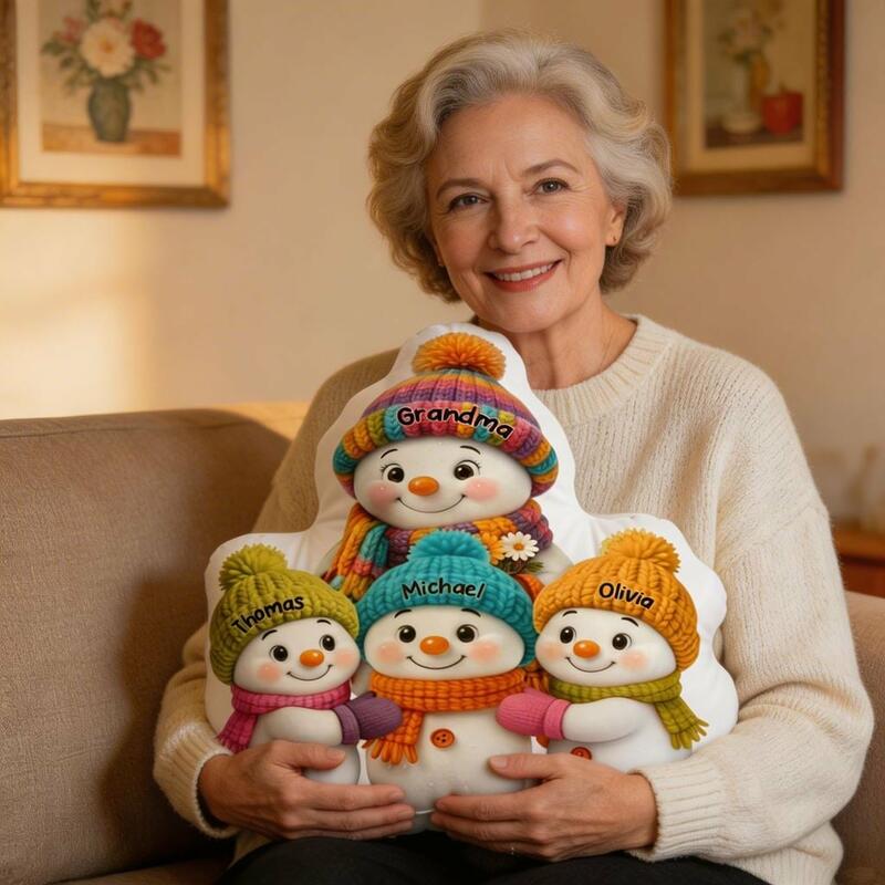 Personalized Cute Snowman Family Pillow with Grandson's Names Sweet Gift for Grandma