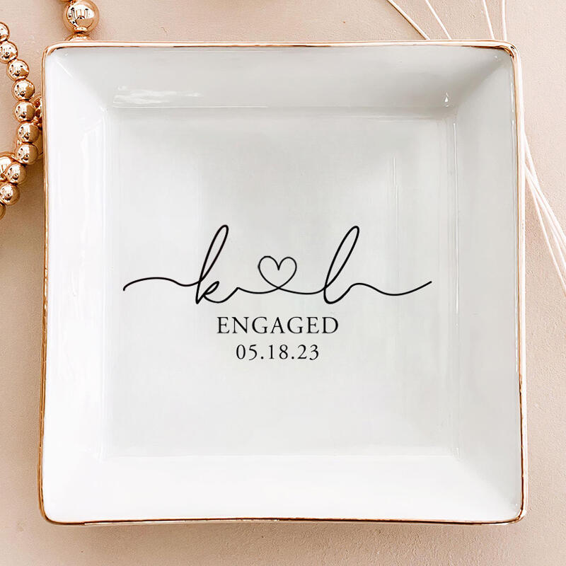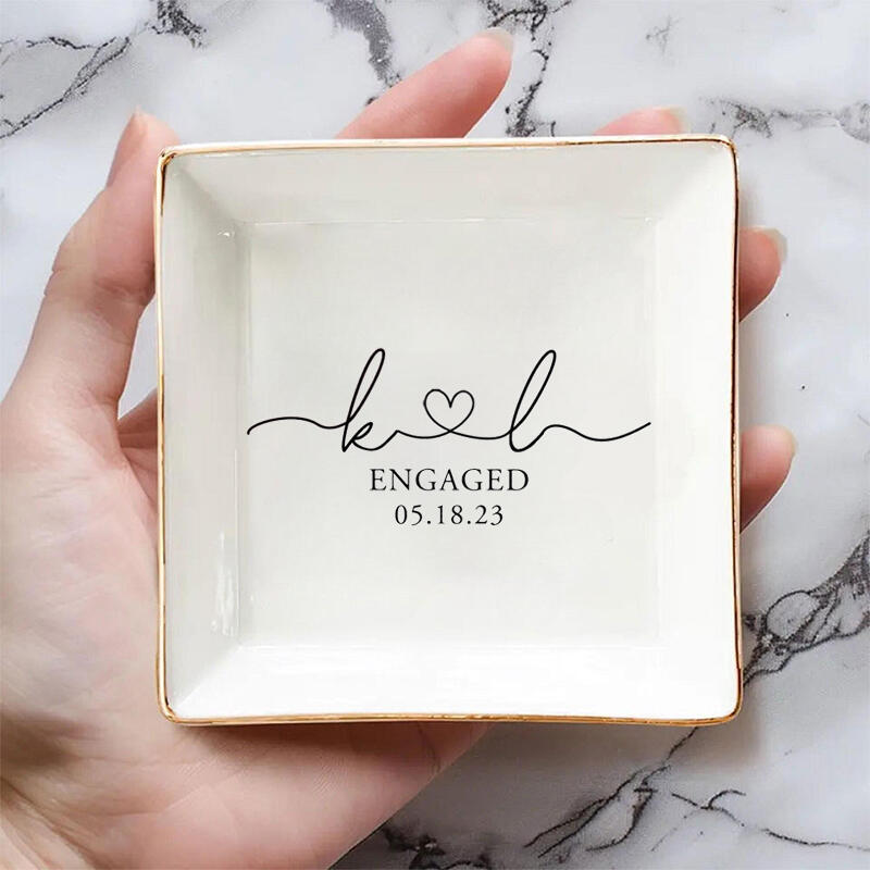 Personlig dato smykke ringfat med egendefinert bokstav Beste gave til kjæresten