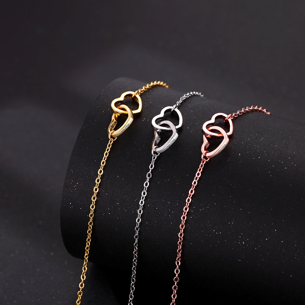Personalized Double Heart-Shaped Engraved Bracelet Beautiful Gift For Your Loved One