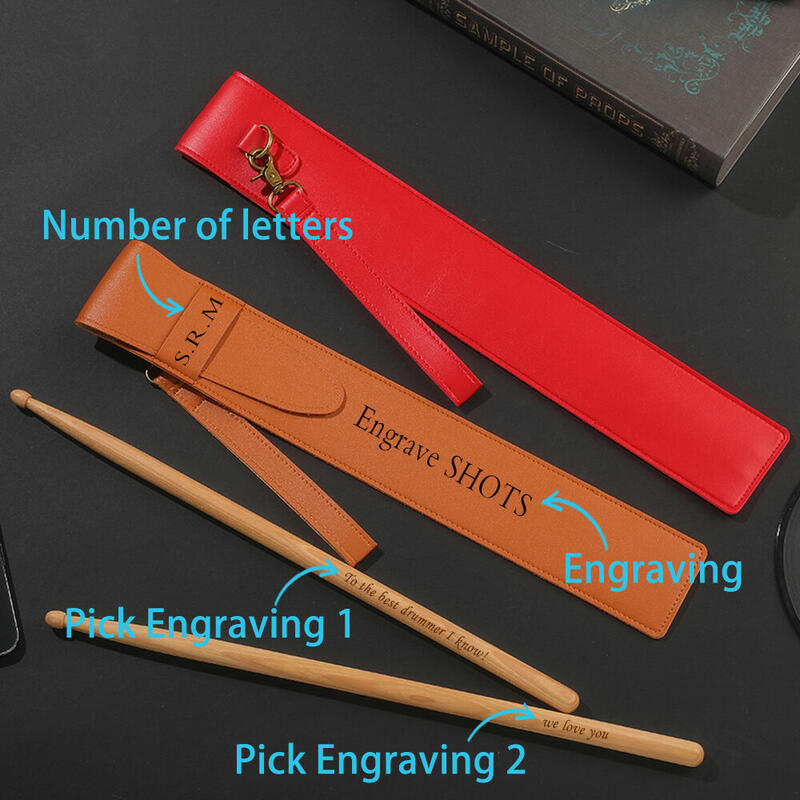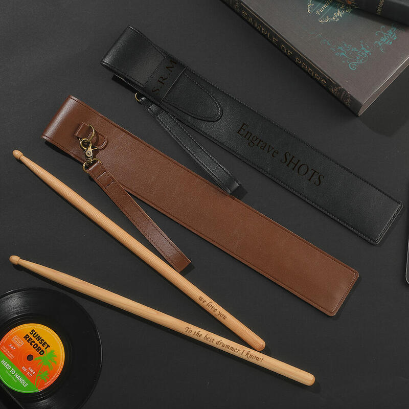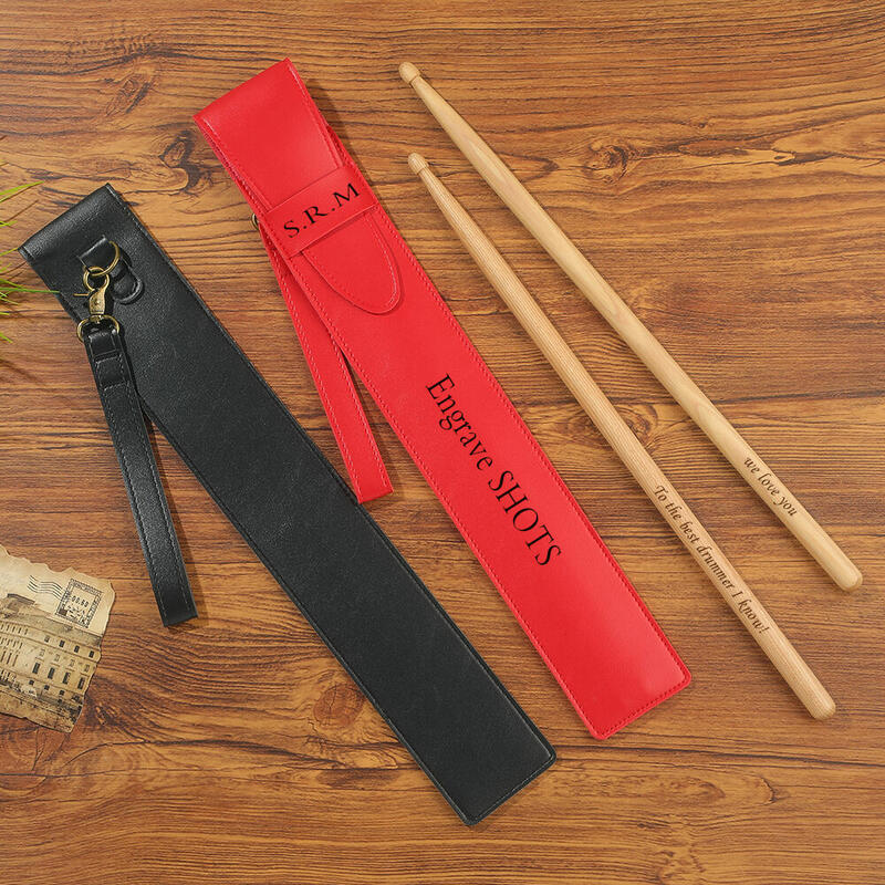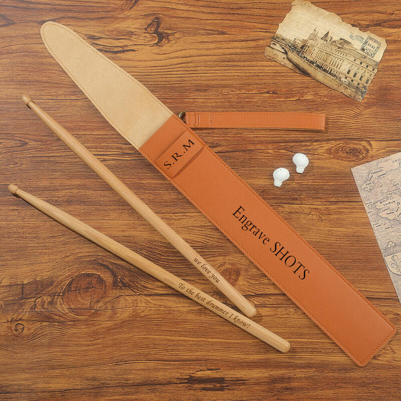 Personalized Drumstick and Genuine Leather Bag Set Birthday Gift for Music Lovers