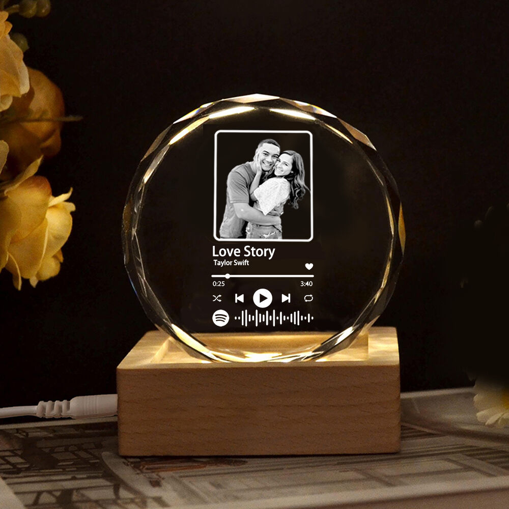 Personalized Engraved Crystal Photo with Custom Spotify Code Gift for Couples