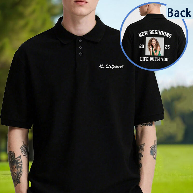 Personalized Engraving Polo Shirt with Custom Photo Romantic Gift for Couples