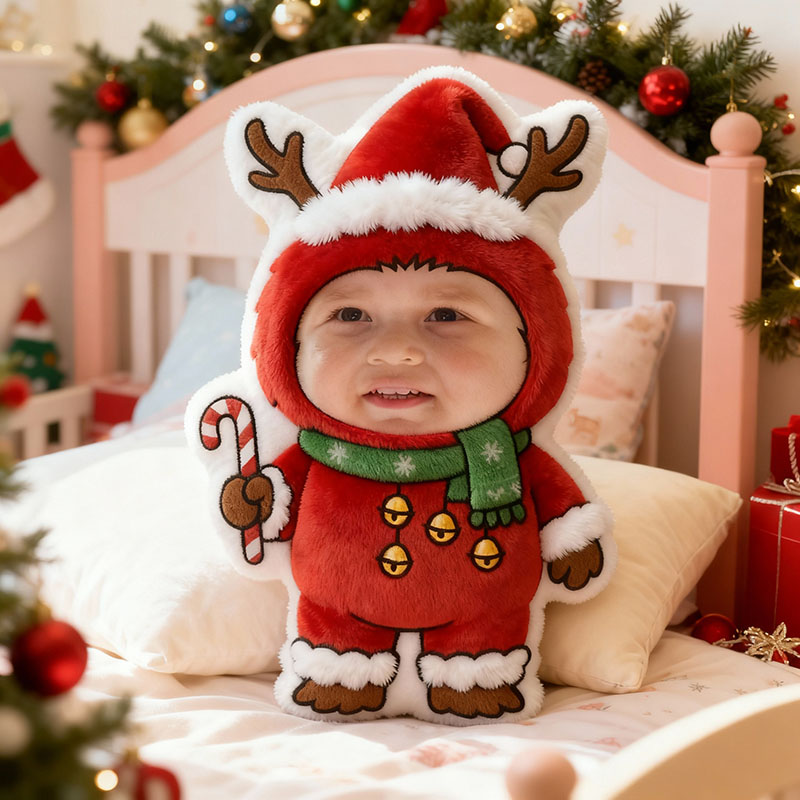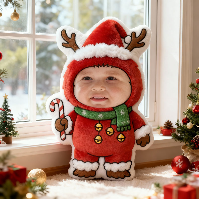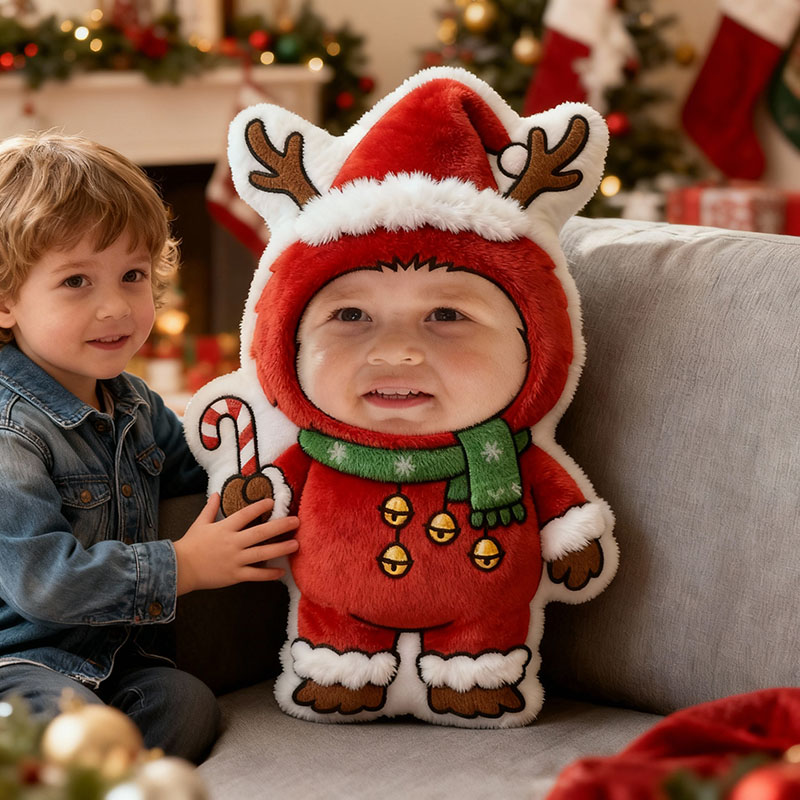 Personalized Face Photo Pillow with Deer Pattern Heartwarming Christmas Gift