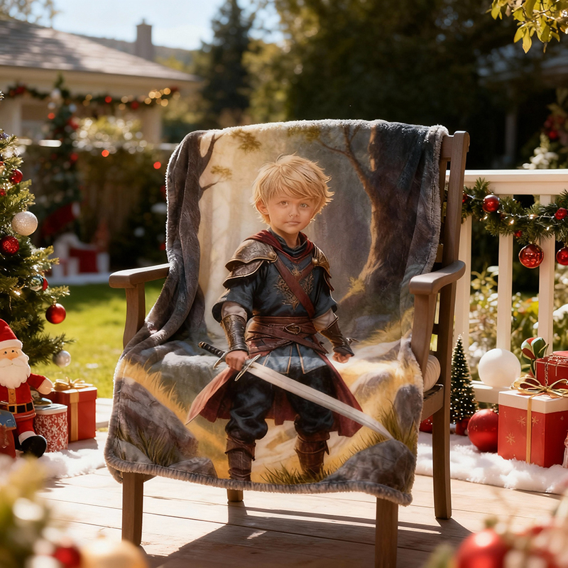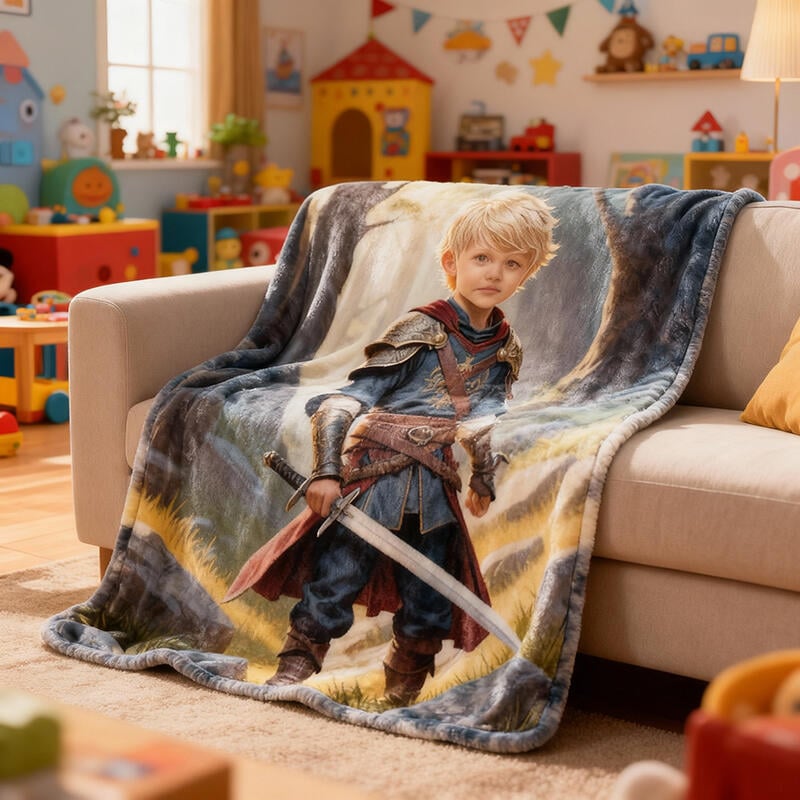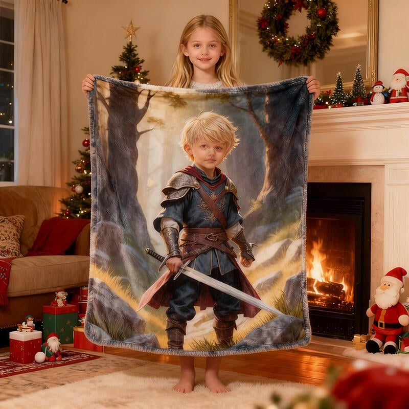 Personalized Face Portrait Blanket Warrior Character Design Cool Gift for Kids