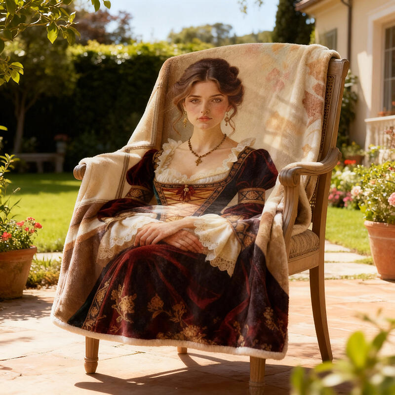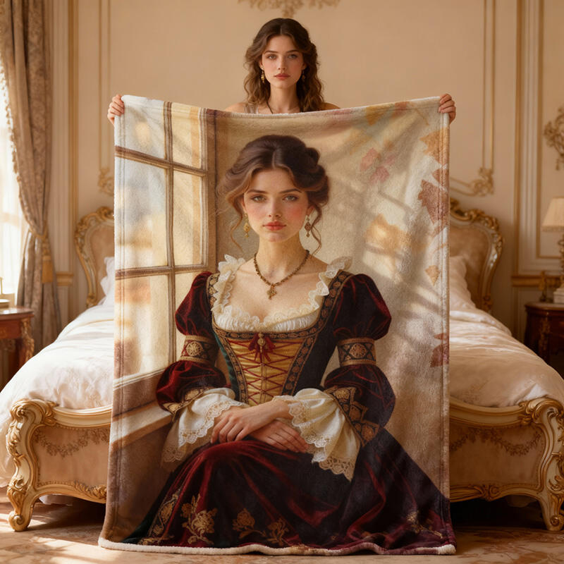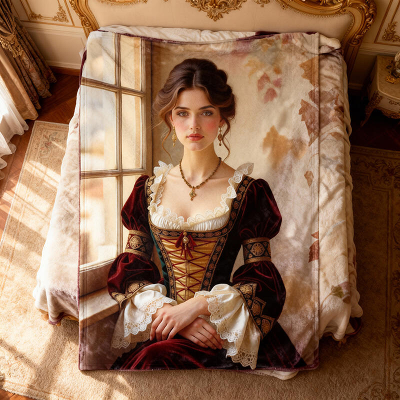 Personalized Face Portrait Blanket with Aristocratic Pattern Elegant Gift for Girlfriend