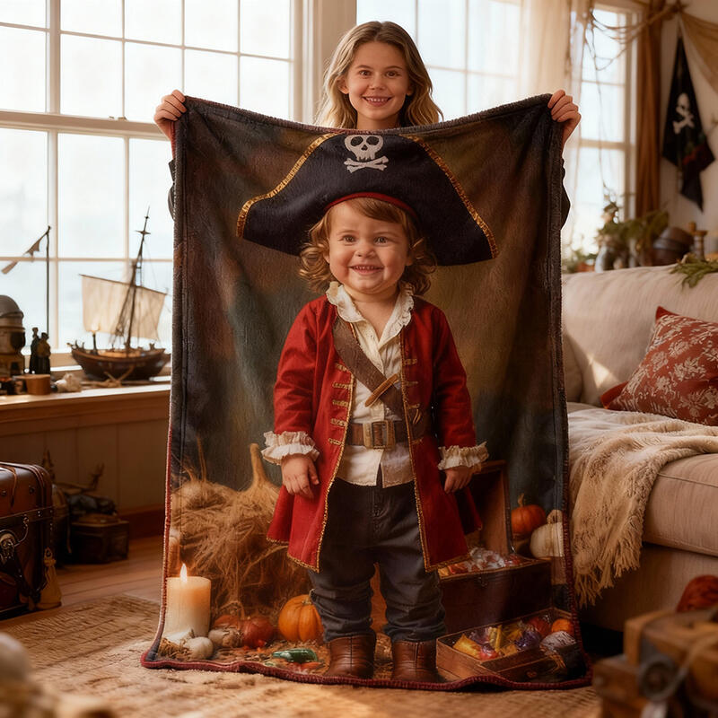 Personalized Face Portrait Blanket with Pirate Character Design Special Gift for Kids