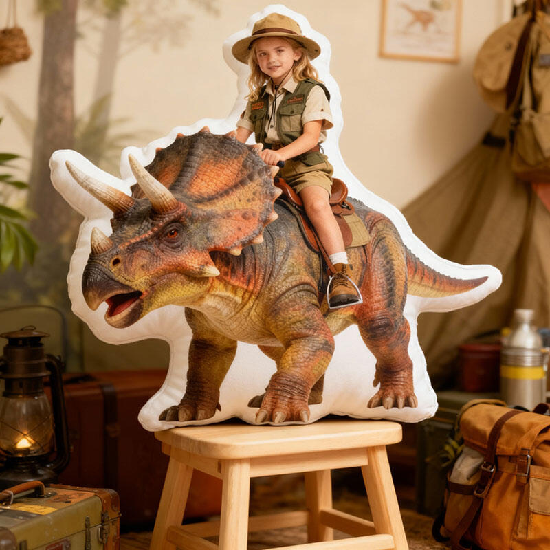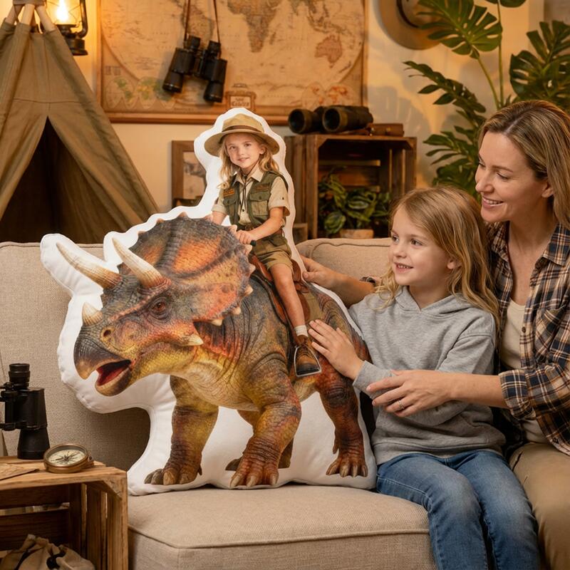 Personalized Face Portrait Pillow with Triceratops Pattern Design Creative Gift for Children