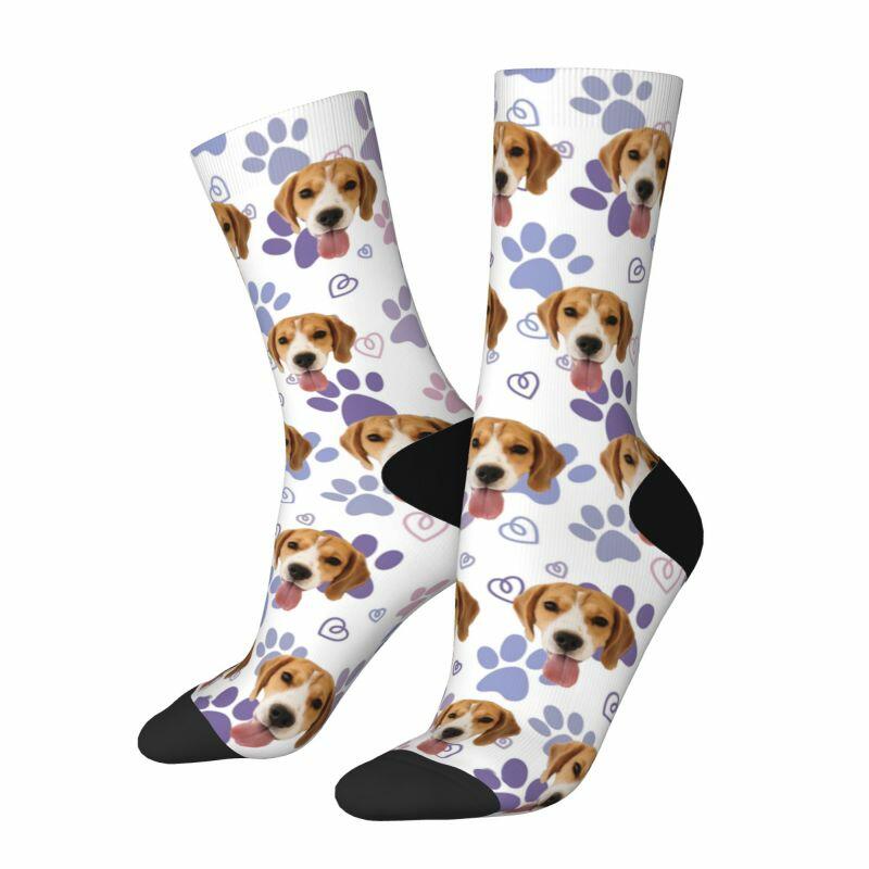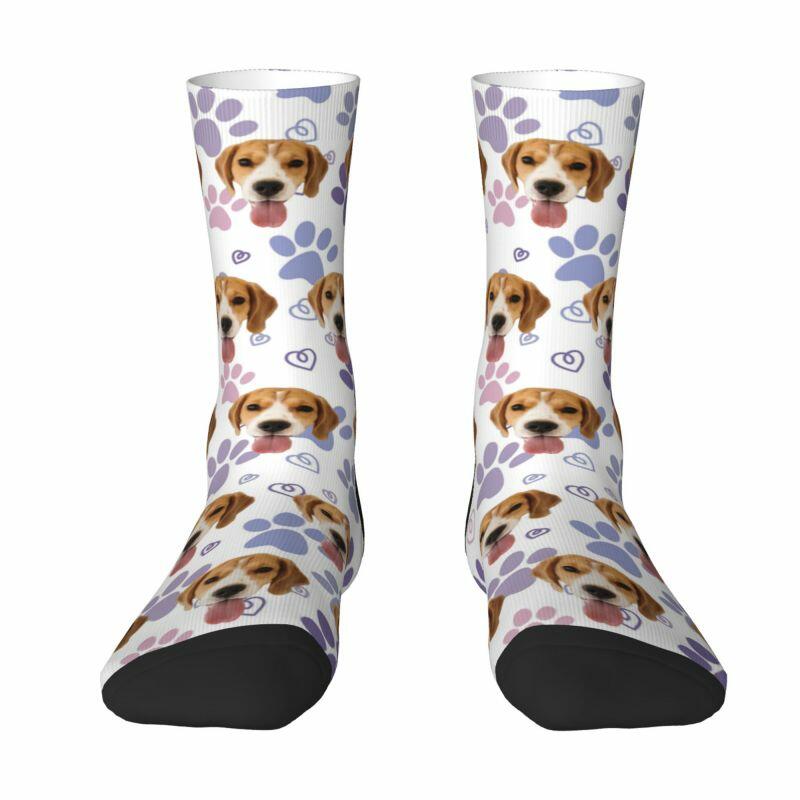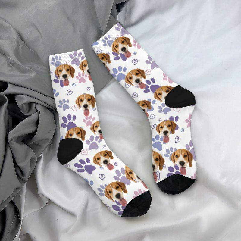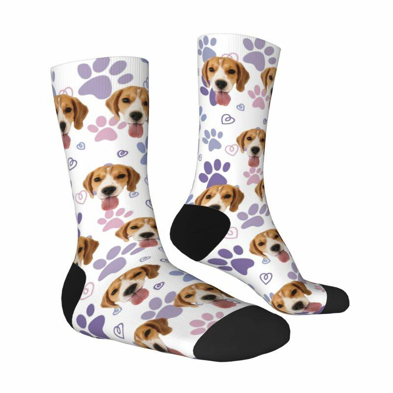 Personalized Face Socks with Cute Purple Dog Paw Prints to Add Pet Photos