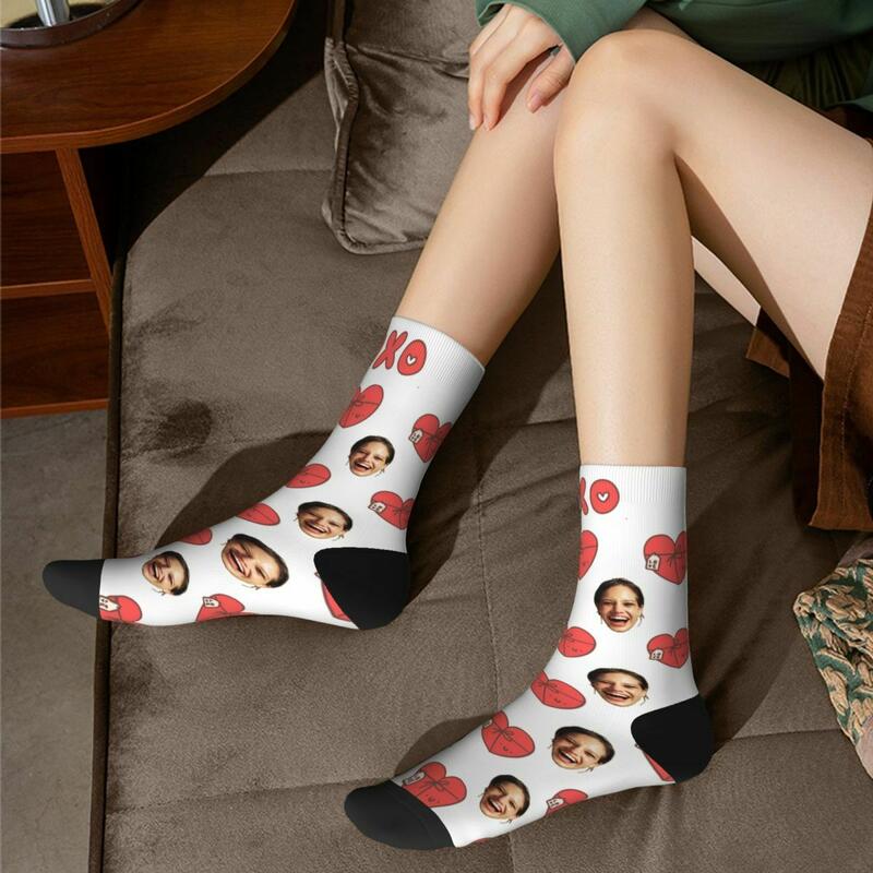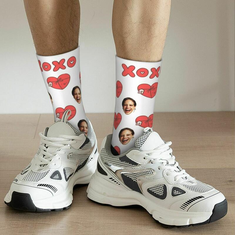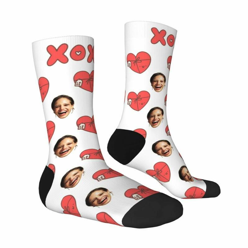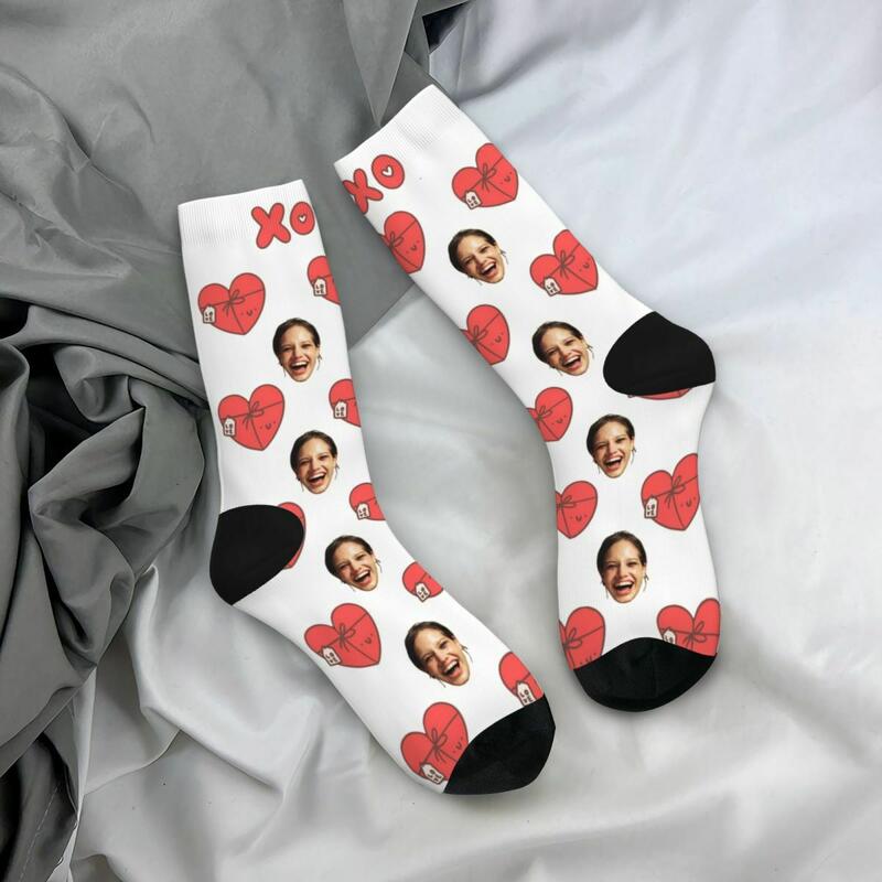 Personalized Face Socks with Heart Gift Box Pattern as a Gift for Wife