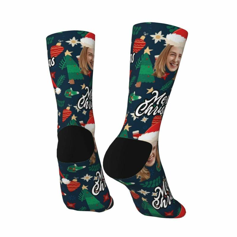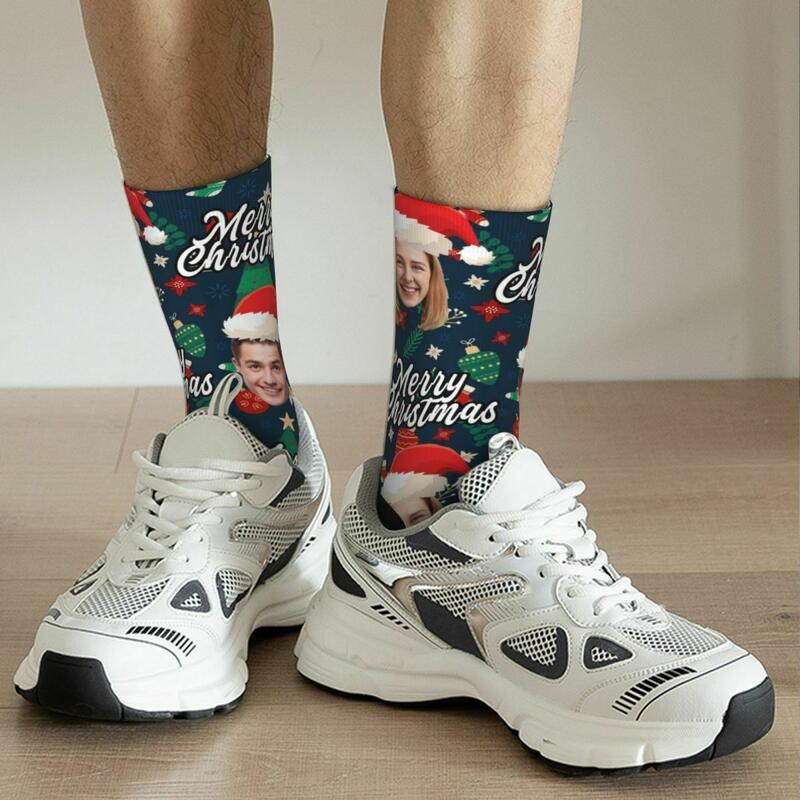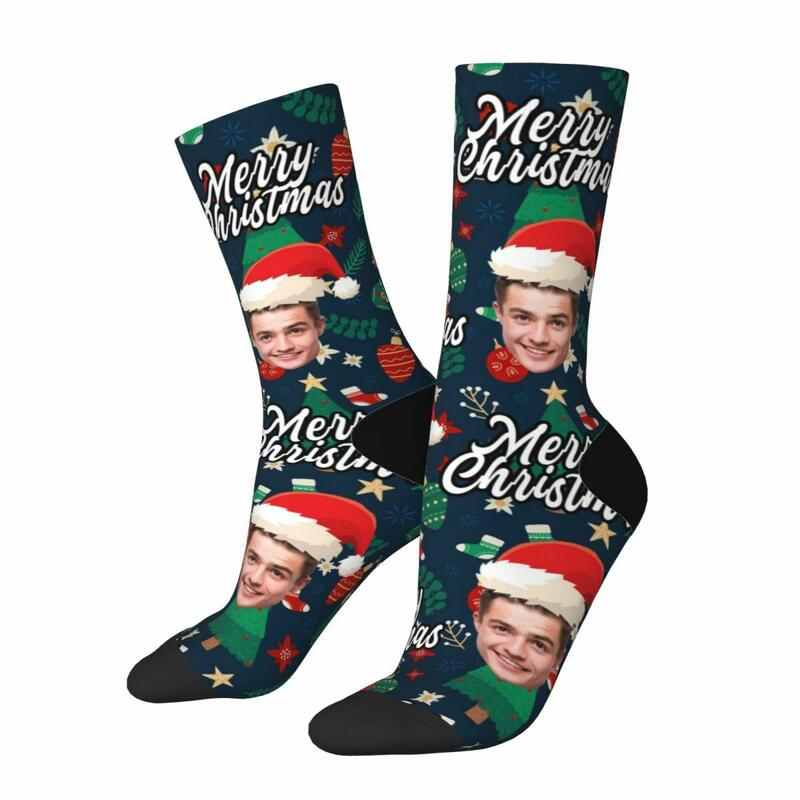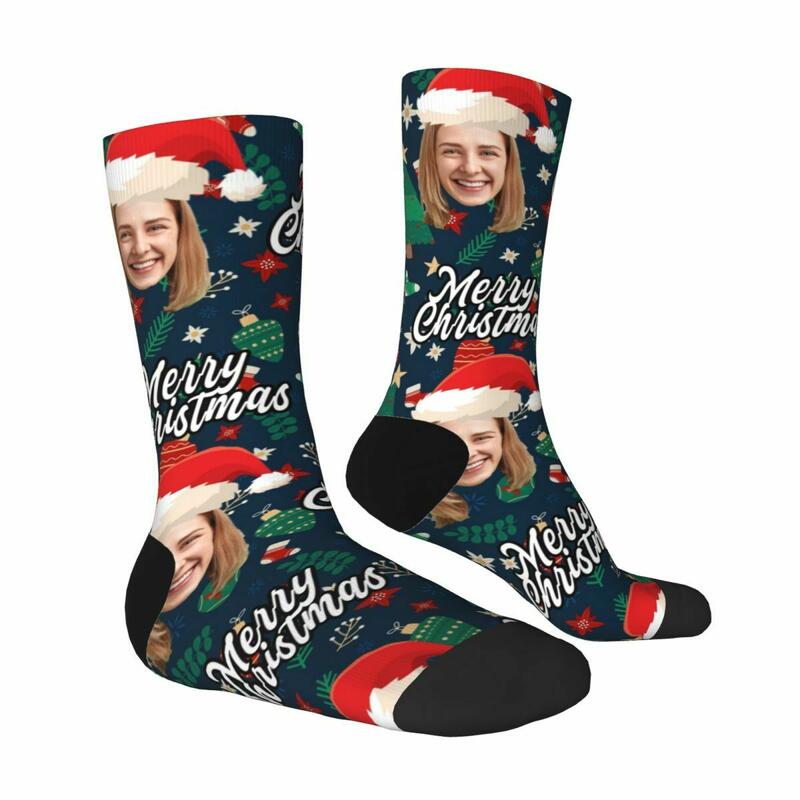 Personalized Face Socks with Santa Hat and Decorative Pattern for Christmas