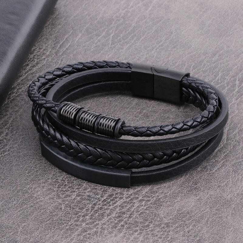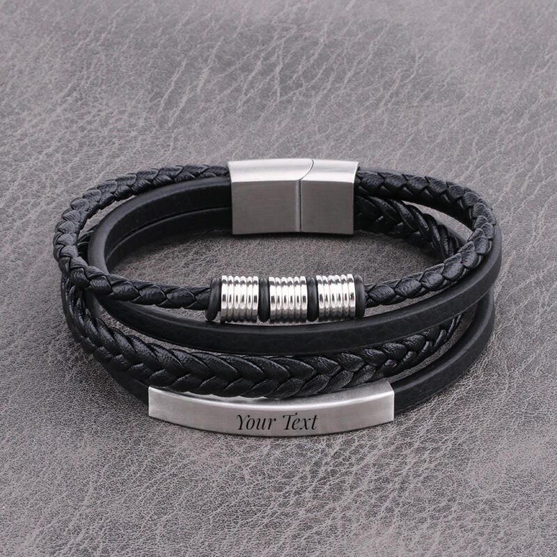Our stunning braided leather and stainless steel bracelet for men makes a wonderful gift for boyfriends, fathers, and male friends, and is perfect for everyday wear. Excellent workmanship, high quality. Leather bracelets with stainless steel bars that can be engraved with names, sentences or photos. Men's bracelets are the perfect gift for Valentine's Day, Father's Day, Christmas and other important occasions.