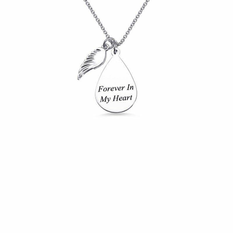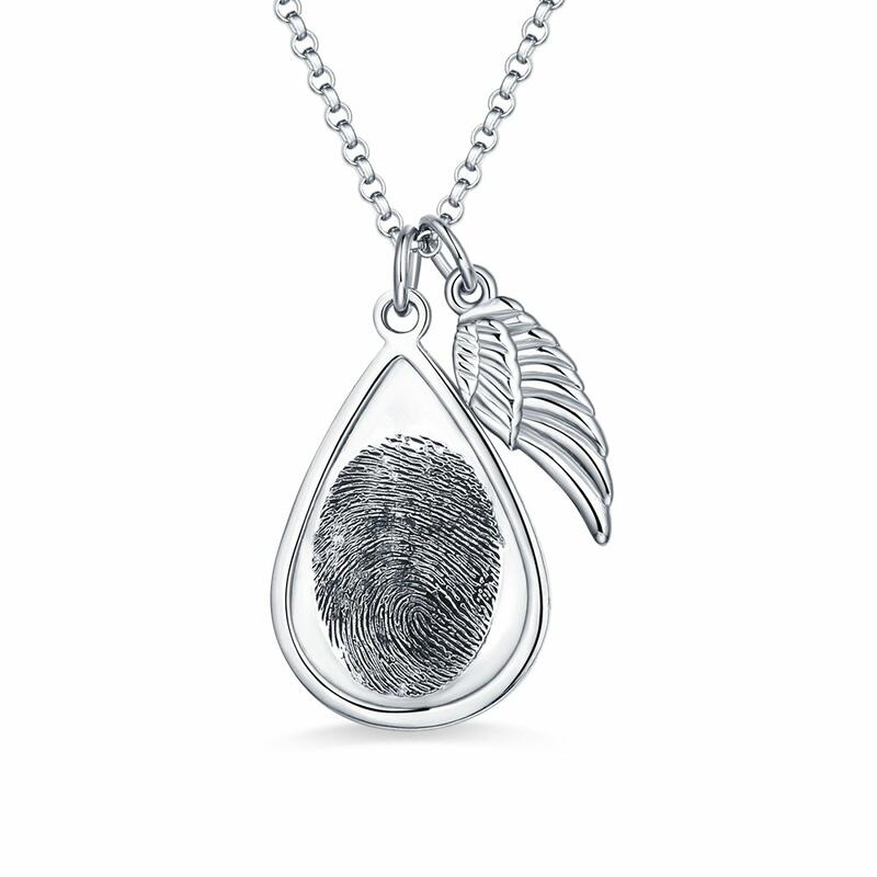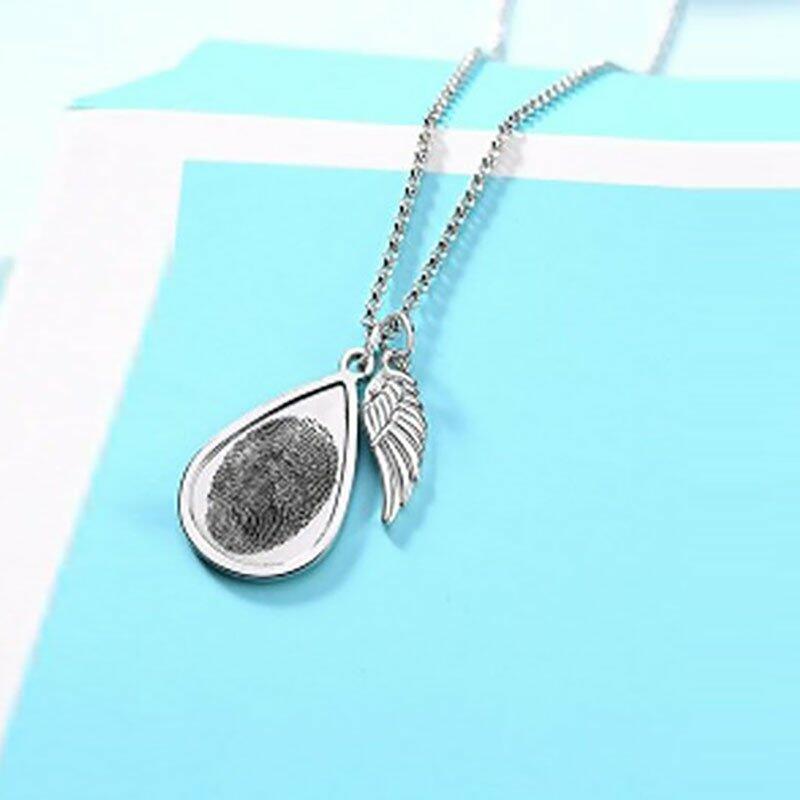 Personalized Fingerprint Jewelry Engraved Name With Angel Wing Necklace
