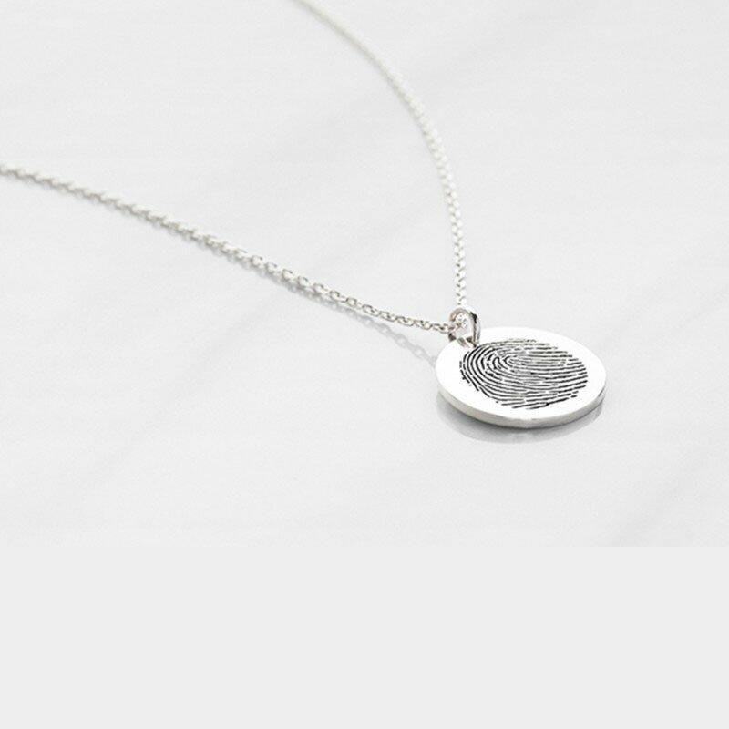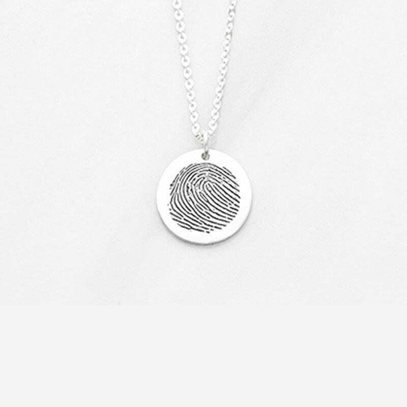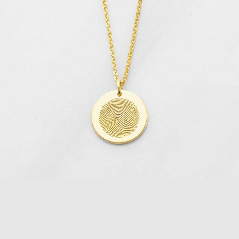 Personlig fingeravtrykkssmykke rundt skivehalskjede med graverte navn