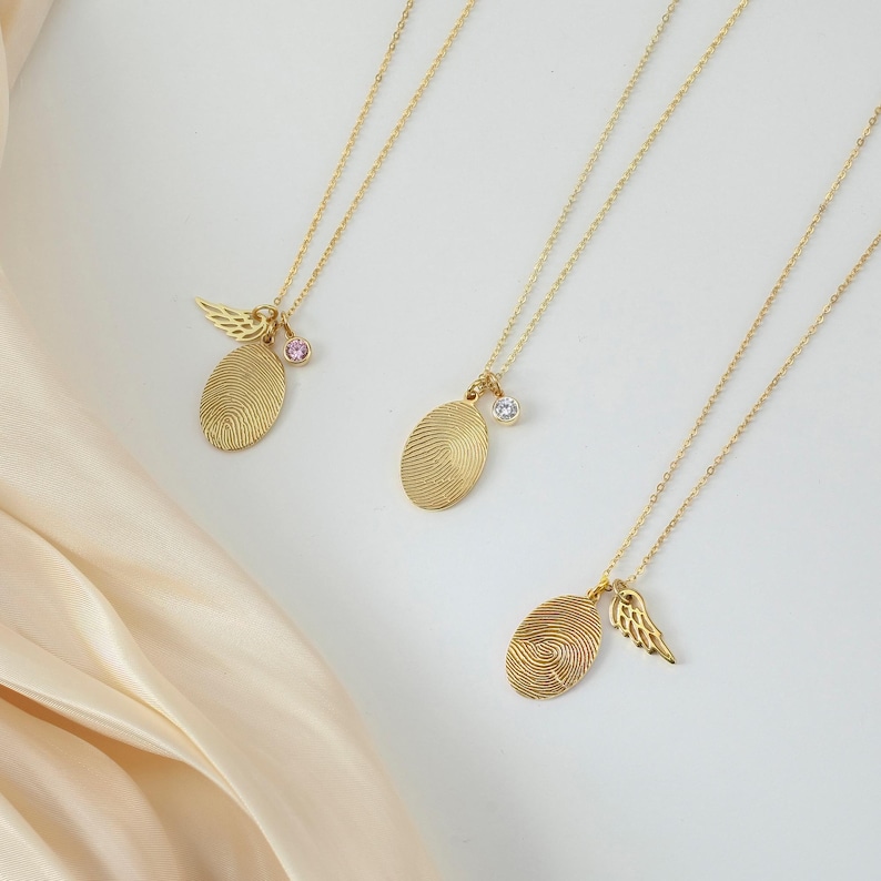Personalized Fingerprint Necklace With Birthstone Simple Gift For Mother