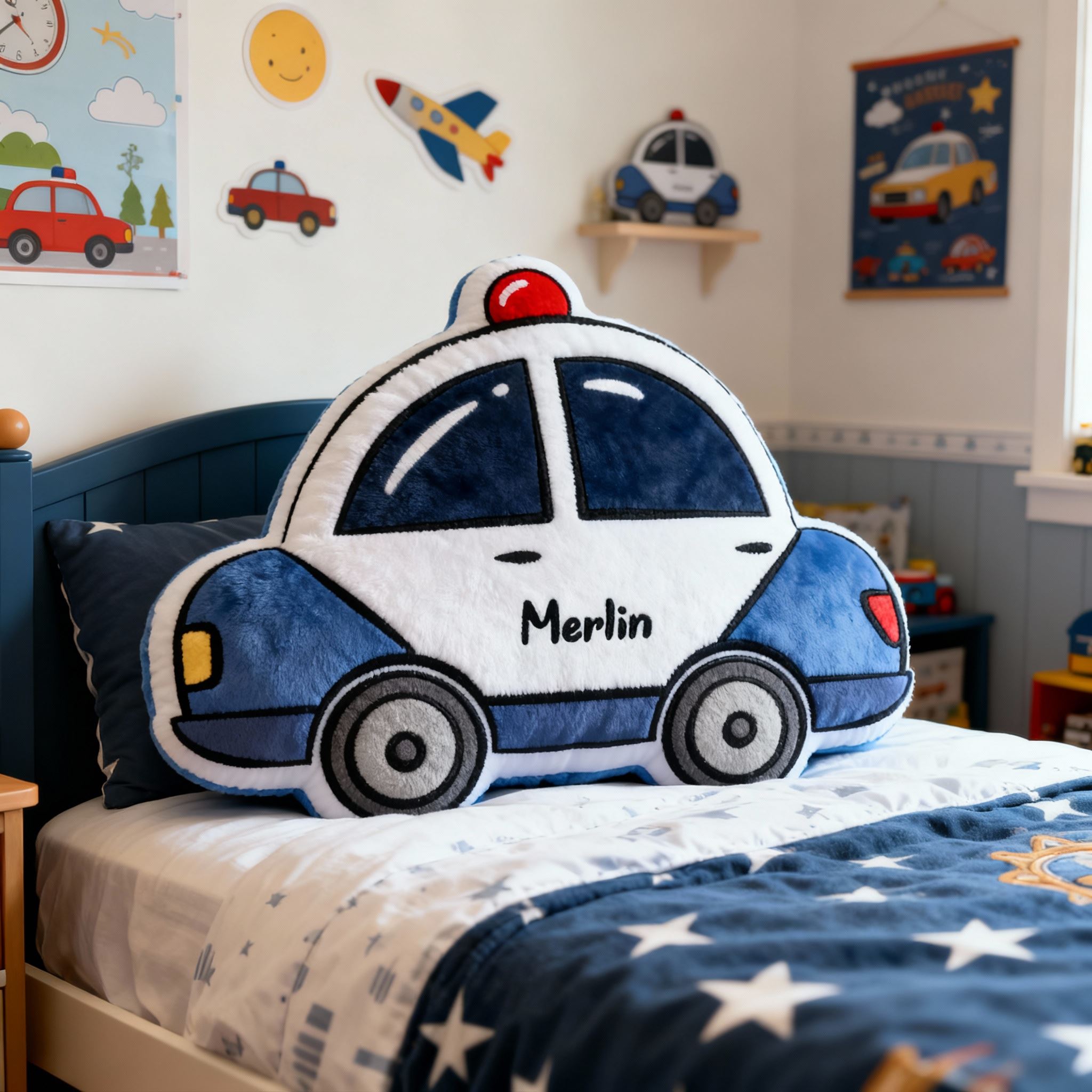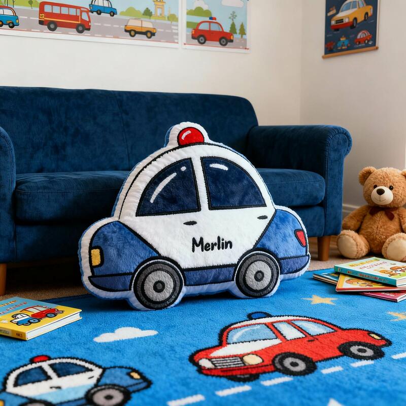 Personalized Police Car-Shaped Pillows with Customizable Names Fun Christmas Gifts for Boys
