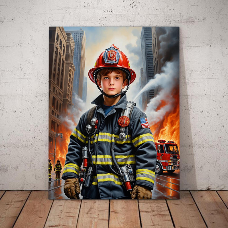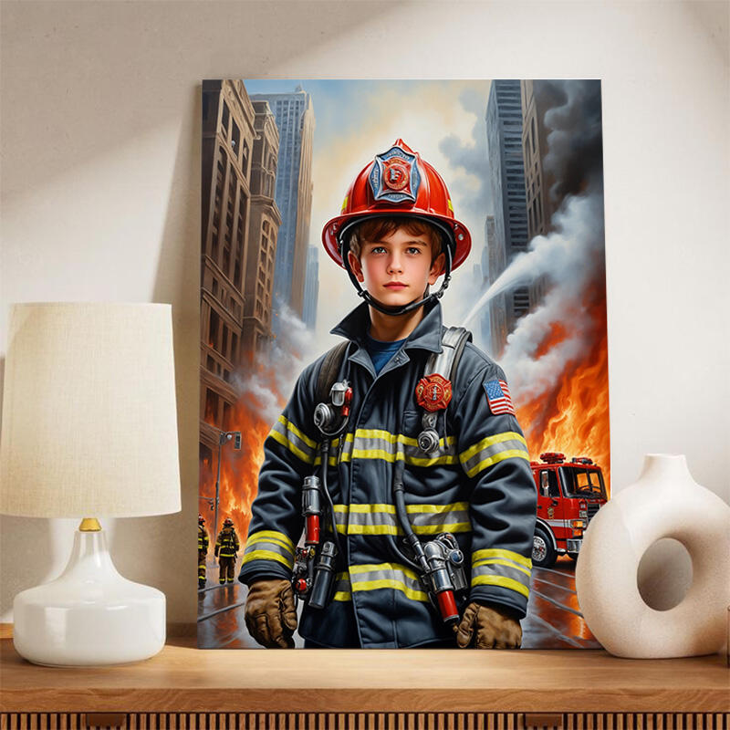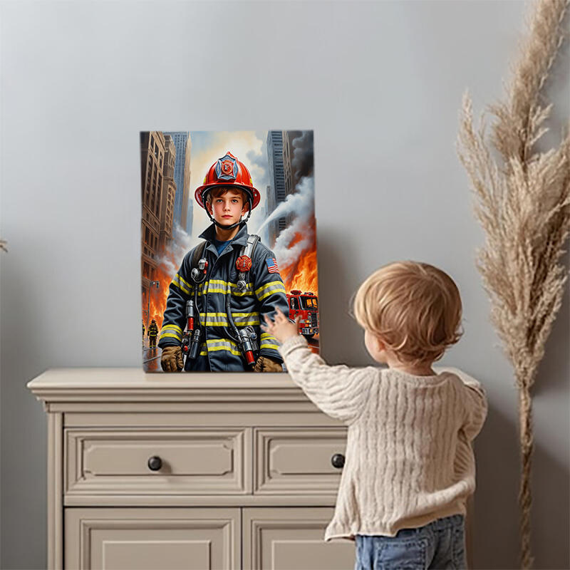Personalized Firefighter Portraits with Custom Face Swap Best Gift for Child