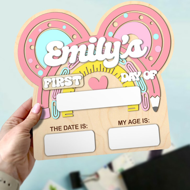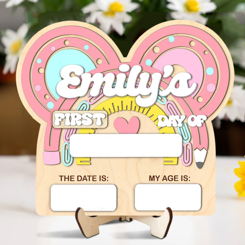 Personalized First Day Of School Sign with Custom Name Big Ears Pattern Beautiful Gift for Child