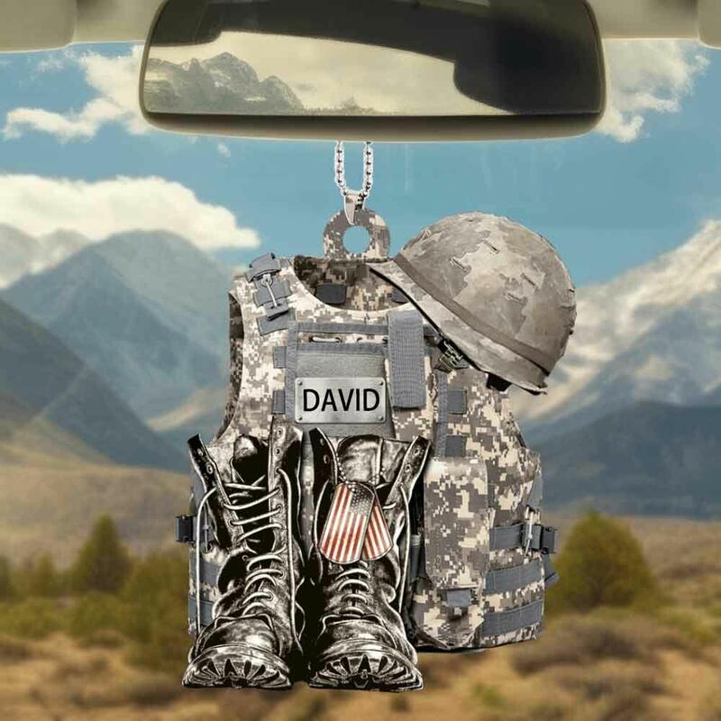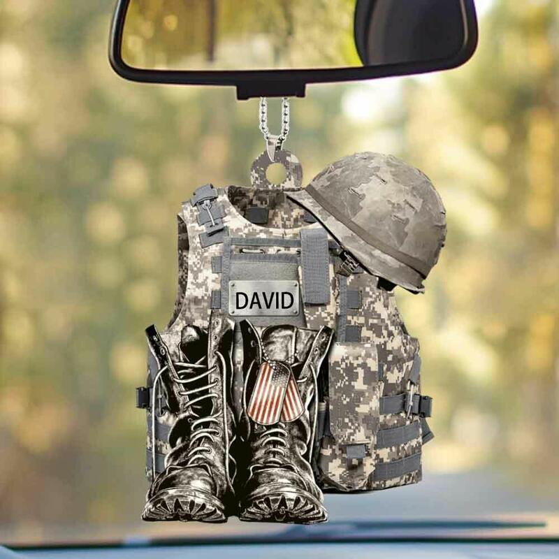 Personalized Flat Acrylic Car Ornament Key Pendant Military Uniform Shape for Him