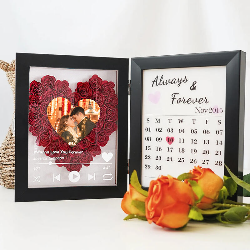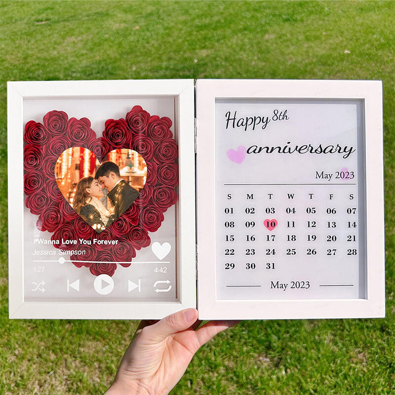 Personalized Flower Shadow Box Custom Heart Photo Love Song with Calendar Great Gift for Lover's Anniversary