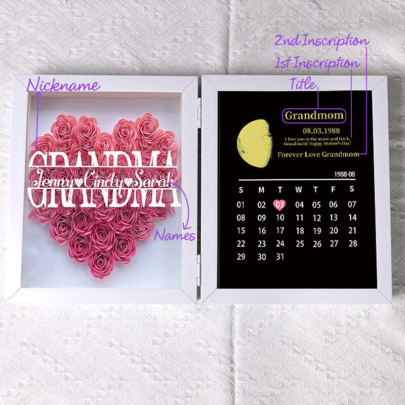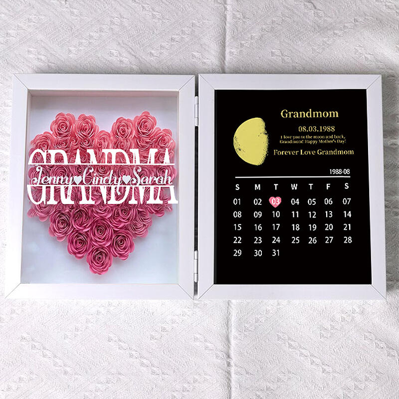 Personalized Flower Shadow Box Custom Moon Phase Calendar with Names Perfect Gift for Mother's Day