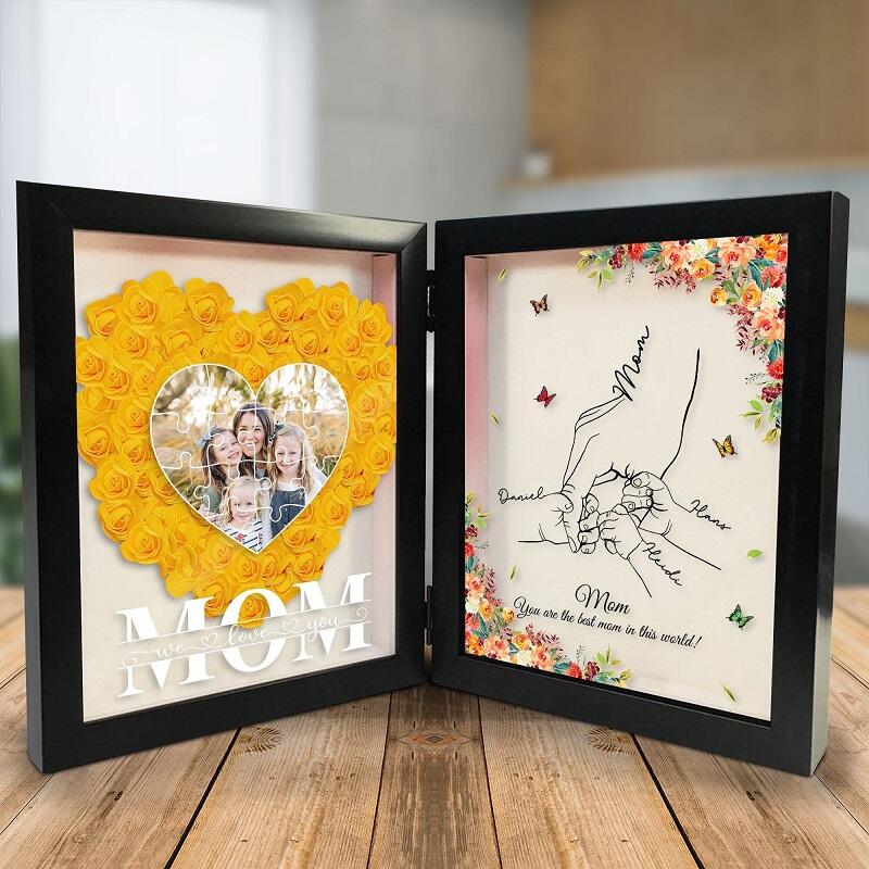 Personalized Flower Shadow Box Custom Photo Hold Your Hand Floral Design Wonderful Mother's Day Gift