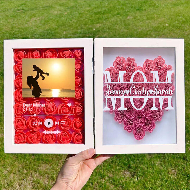 Personalized Flower Shadow Box Custom Photo Love Song Double Side Design Attractive Mother's Day Gift