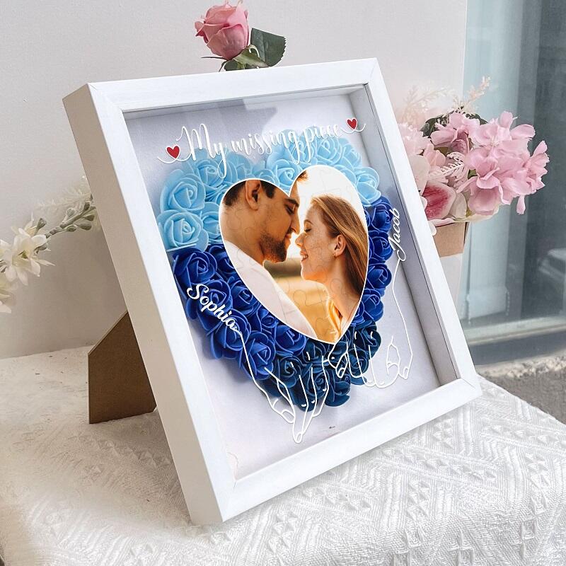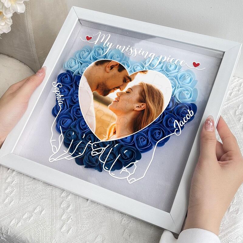 Personalized Flower Shadow Box My Missing Piece with Hold Your Hand Design Perfect Gift for Lover