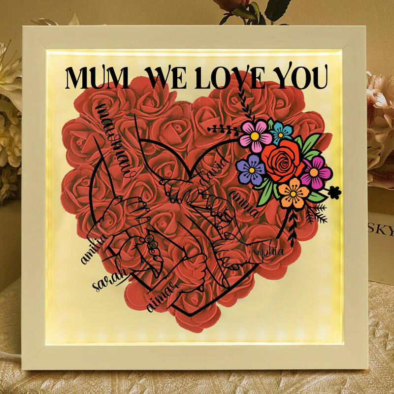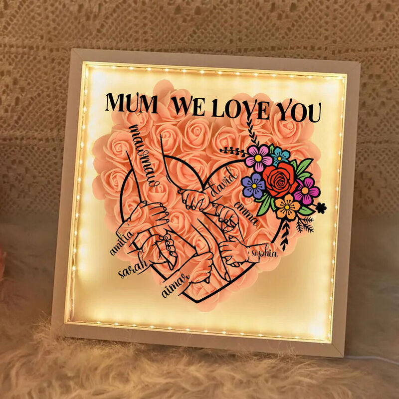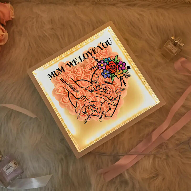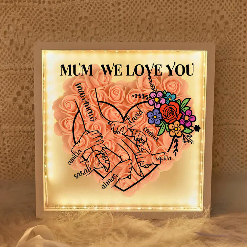 Personalized Flower Shadow Box Photo Frame with Light Customized Hand-in-Hand Pattern Mother's Day Gift