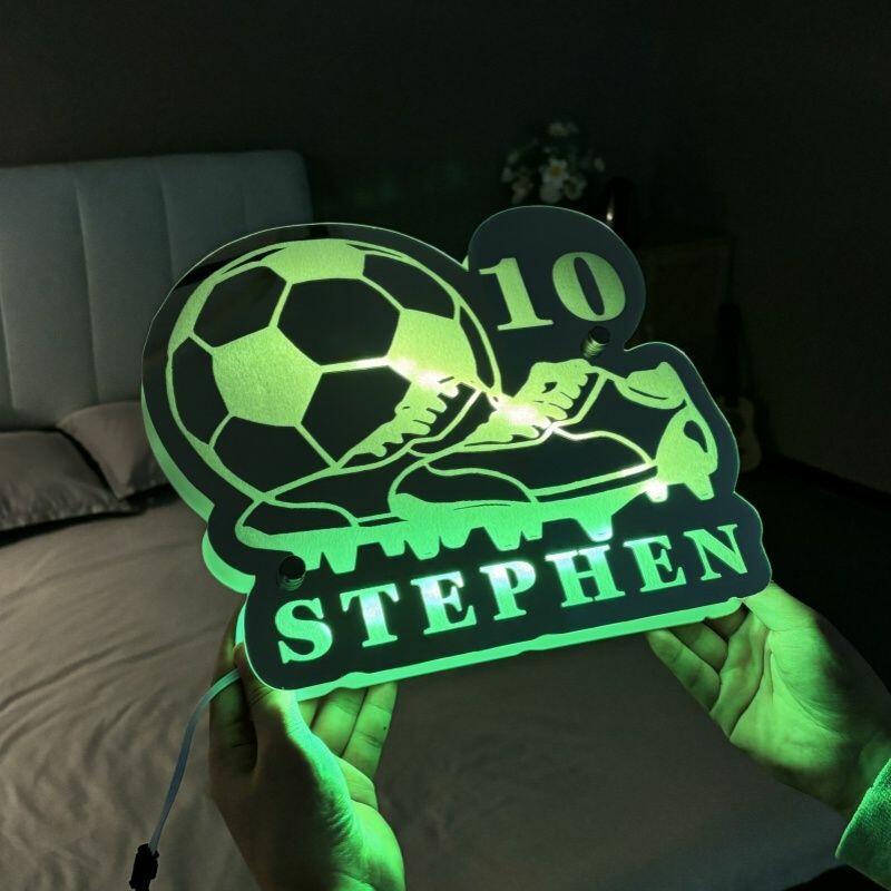 Personalized Football Mirror Lights with Customizable Names and Numbers Cool Gift for Football Enthusiasts