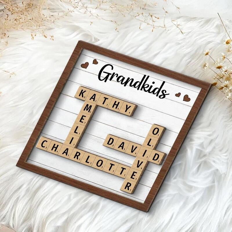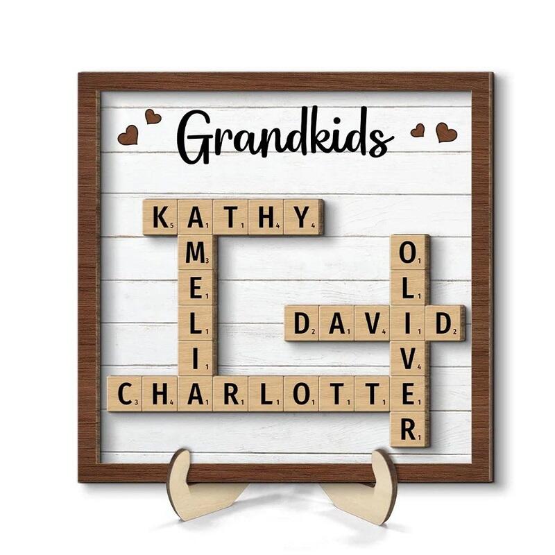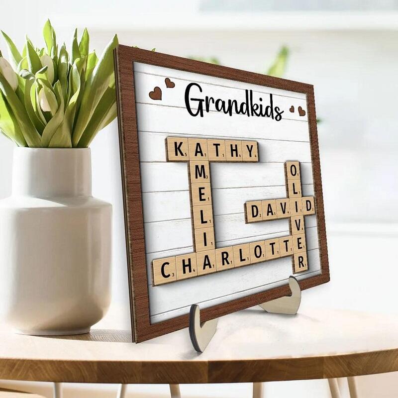 Personalized Frame Custom Grandkids Names Scrabble Sign Design Creative Gift for Mother's Day