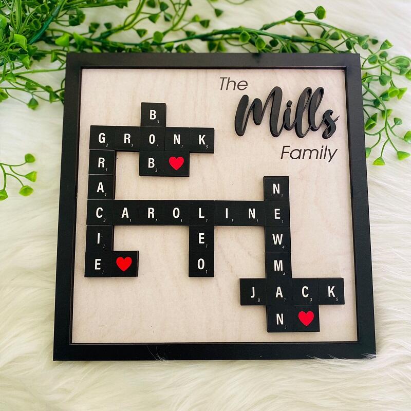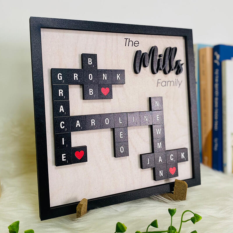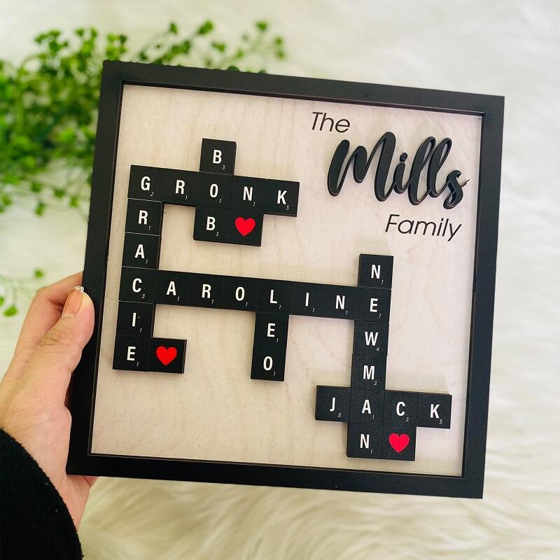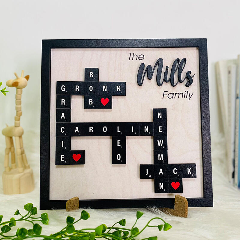 Personalized Frame Scrabble Sign Custom Family Names Crossword Design Exquisite Gift for Mother's Day