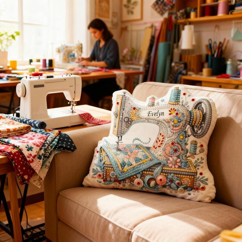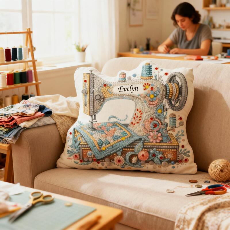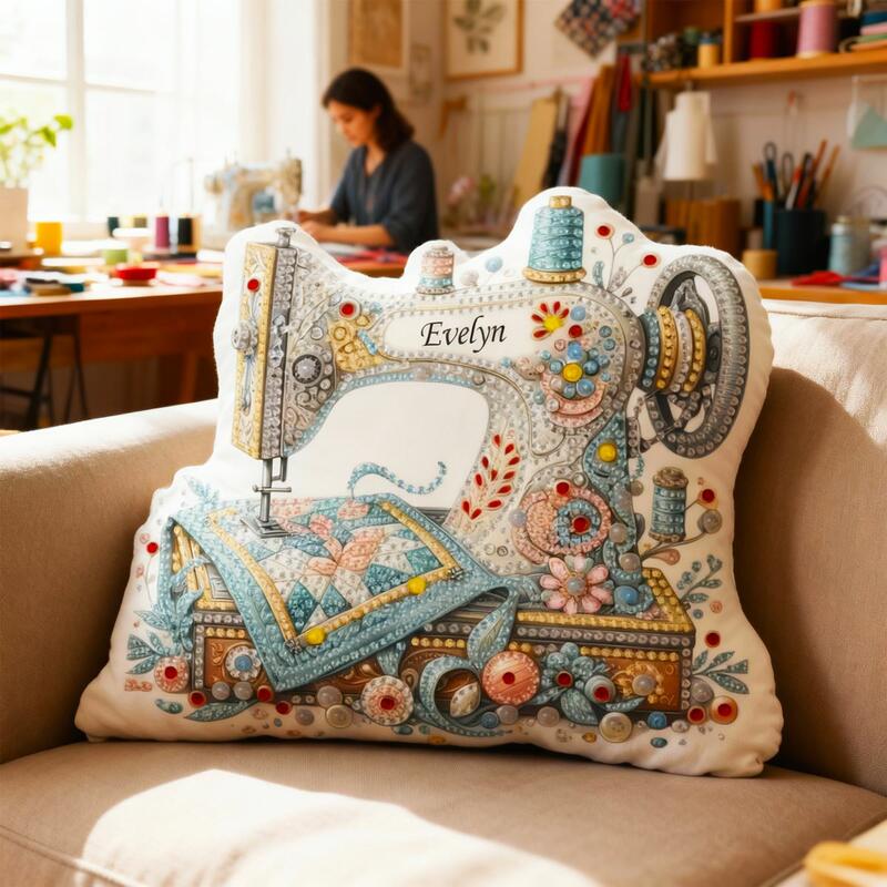 Personalized Gemstone Sewing Machine Printed Throw Pillow Fun Cushion Birthday Gift for Kids