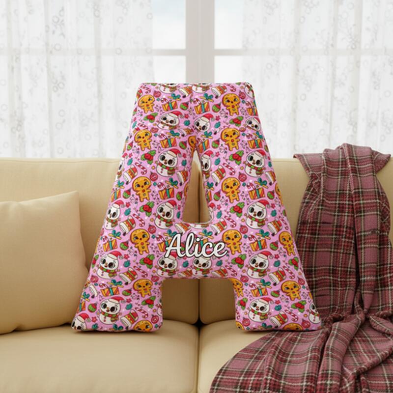 Personalized Gingerbread Man Pillow Cartoon Snowman Print Pillow Soft Cushion Gift for Christmas