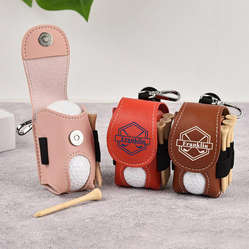 Our premium customizable golf bags offer a sleek and luxurious look while providing the durability you need for your golfing adventure. Perfect for those who appreciate simplicity and functionality, this bag can securely hold up to 2 golf balls while maintaining a compact design. Convenient slots on the side of the bag can store up to 4 golf tees, allowing you to easily access your essentials while you play. Its compact size allows it to slip easily into a pocket or conveniently hang from a backpack, allowing you to always have access to your golf balls when you need them.