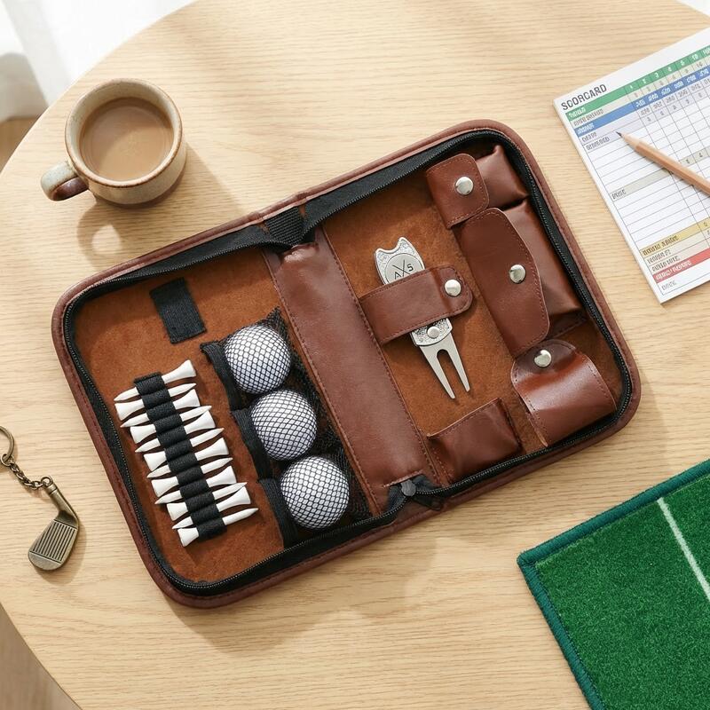 Tour-Ready Durability – Crafted from water-resistant full-grain leather that ages beautifully while protecting contents from rain or cart spills. Lightweight yet structured design fits easily in any golf bag pocket without bulk.