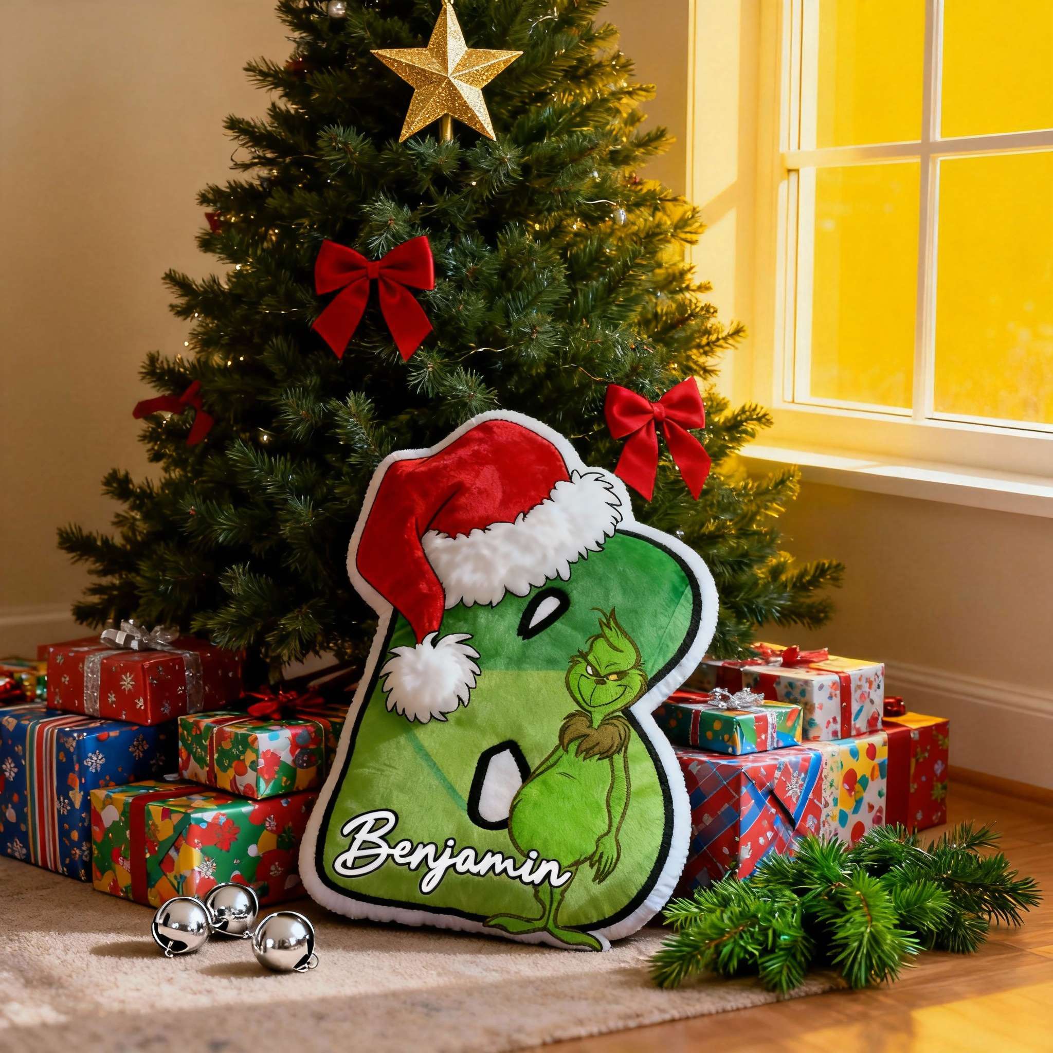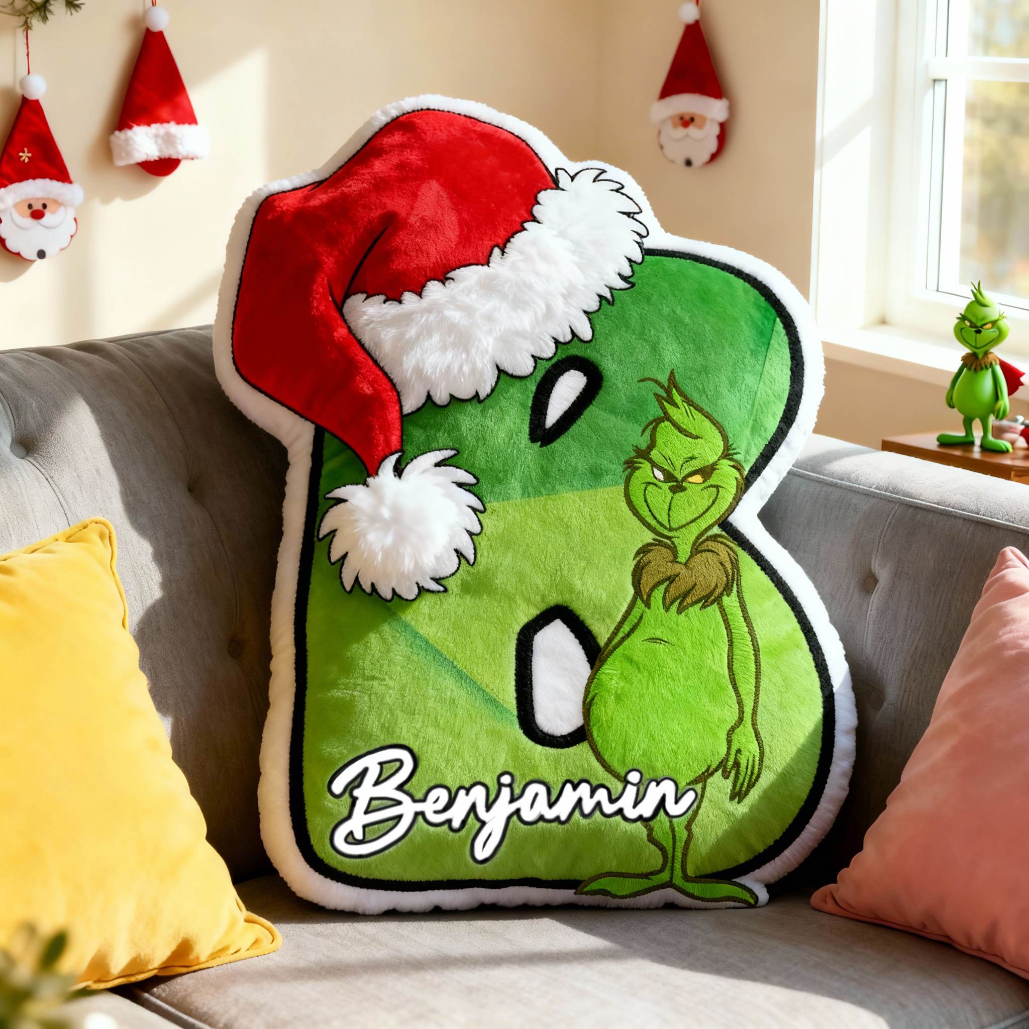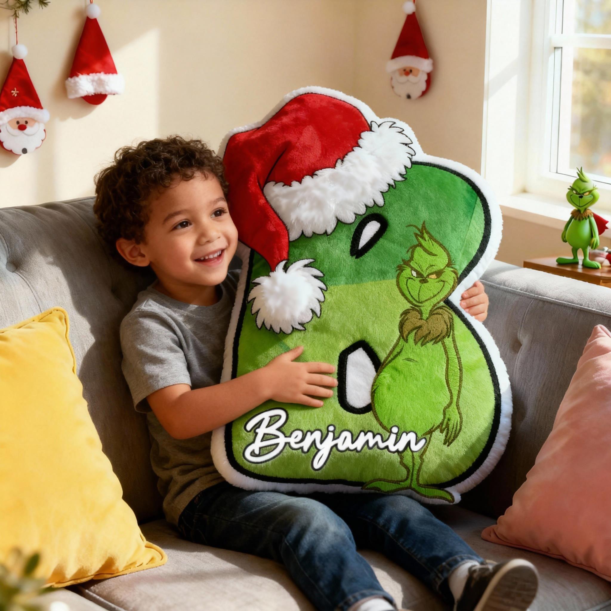 Personalized Green Cartoon Character Letter Pillow Fun Christmas Gift for Kids