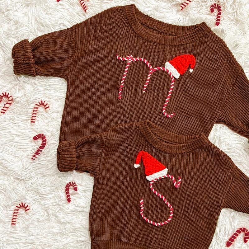 Personalized Handmade Name Sweater with Custom Letter And Santa Hat Pattern Creative Christmas Gift