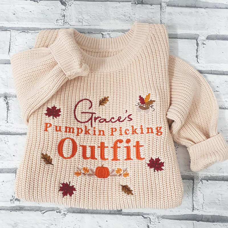 Personalized Handmade Name Sweater with Maple Leaves Pattern Exquisite Gift for Kids